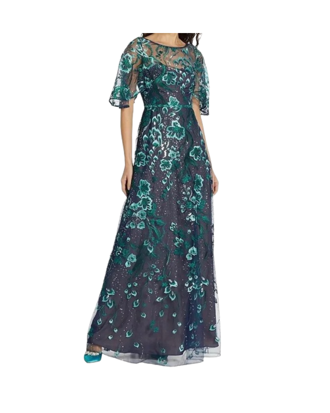 Sequin-embellished Embroidered Tulle Maxi Dress