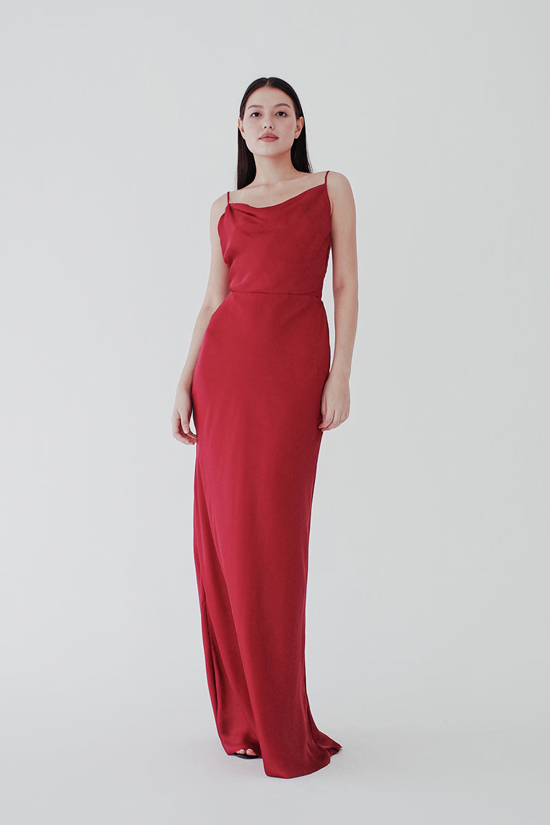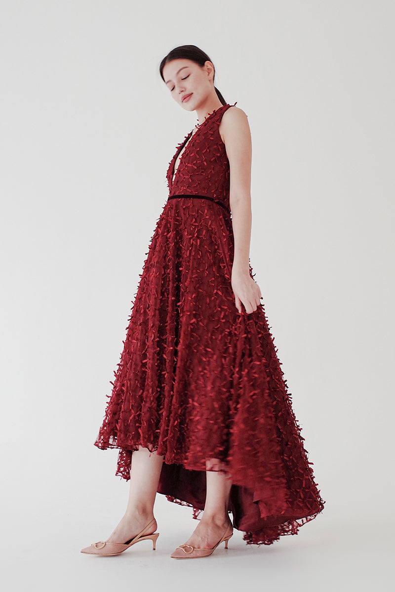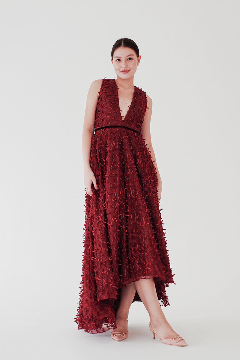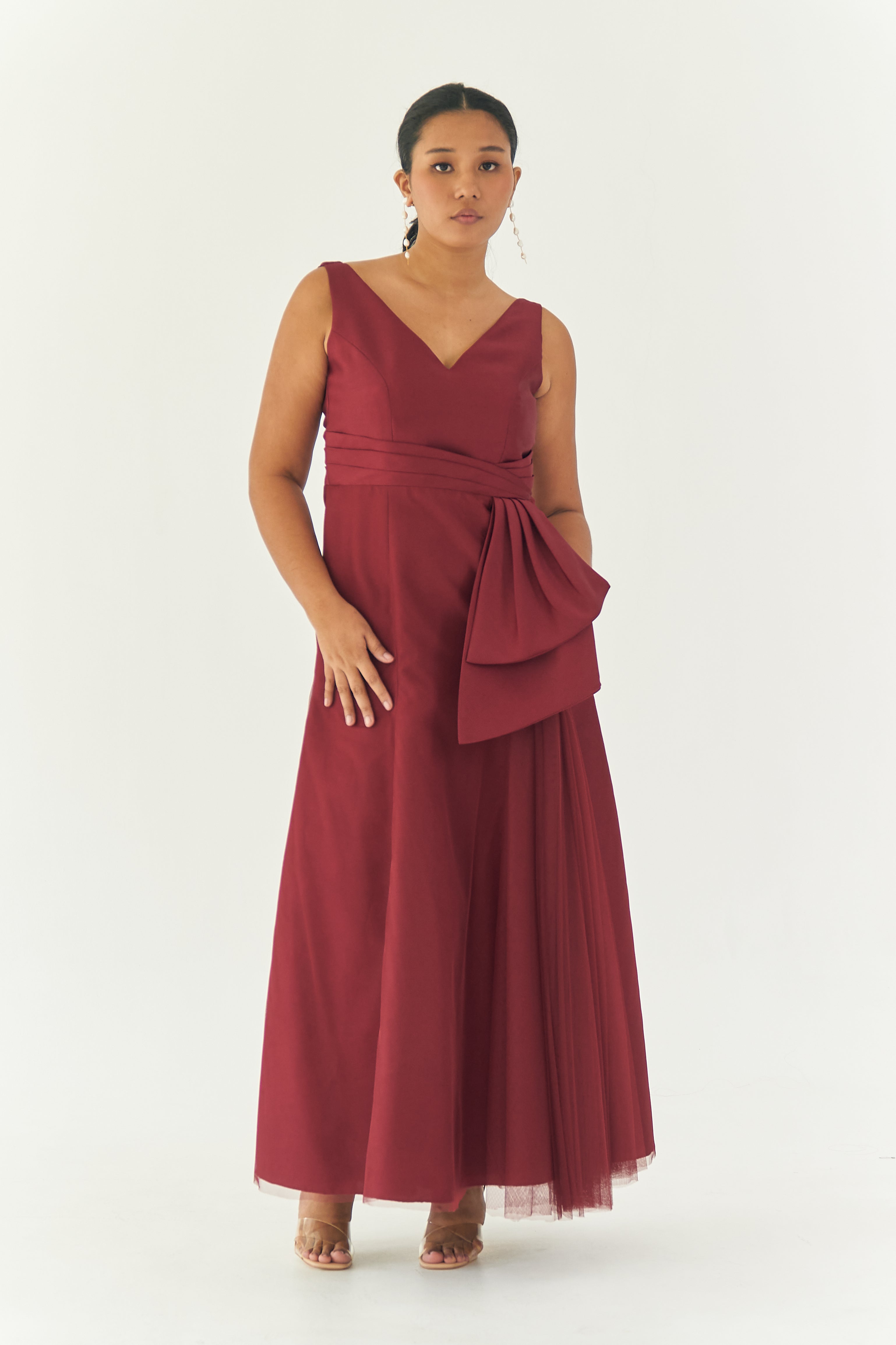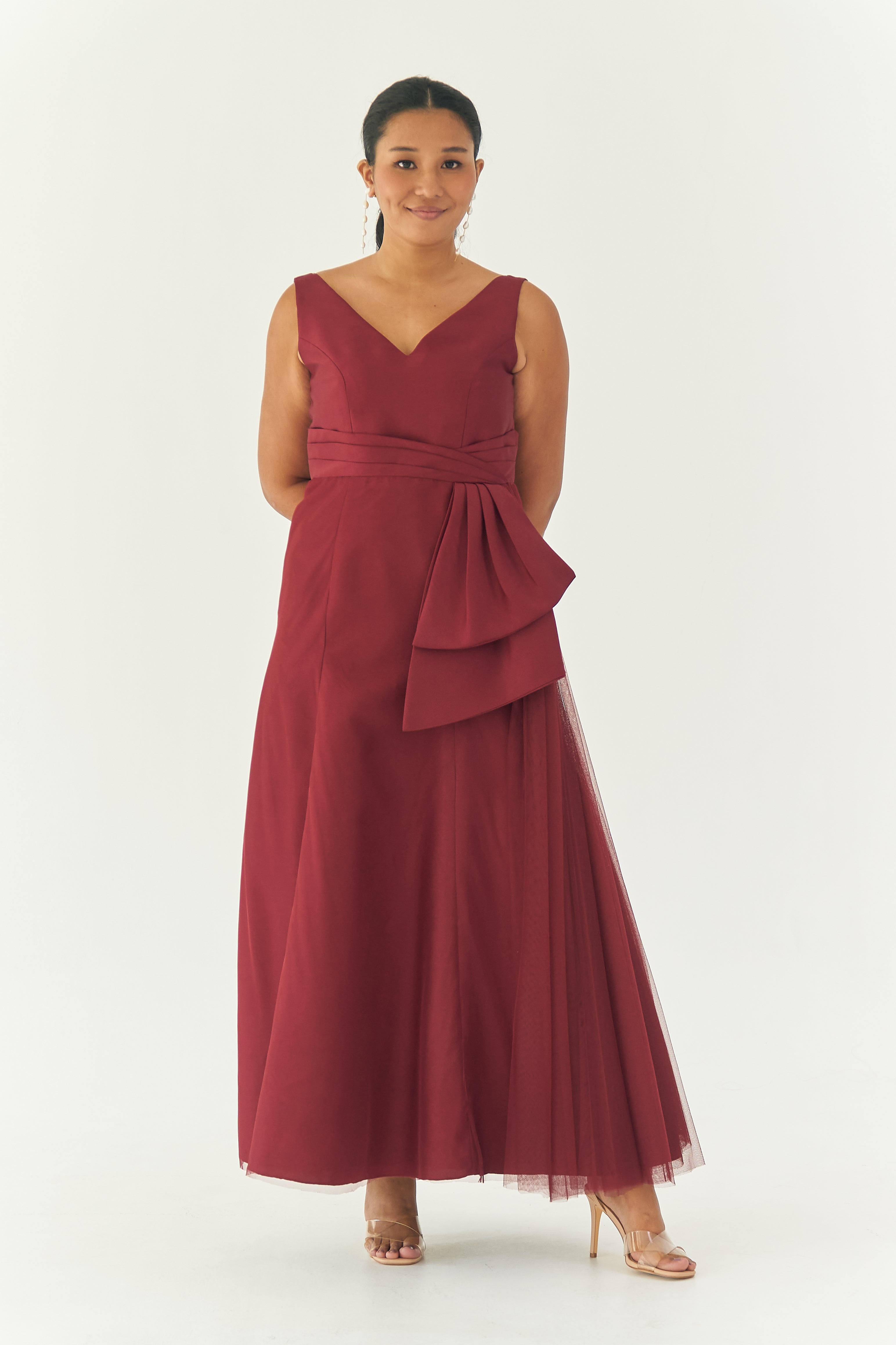Maroon Gazar with Tulle Overlay Sleeveless Gown