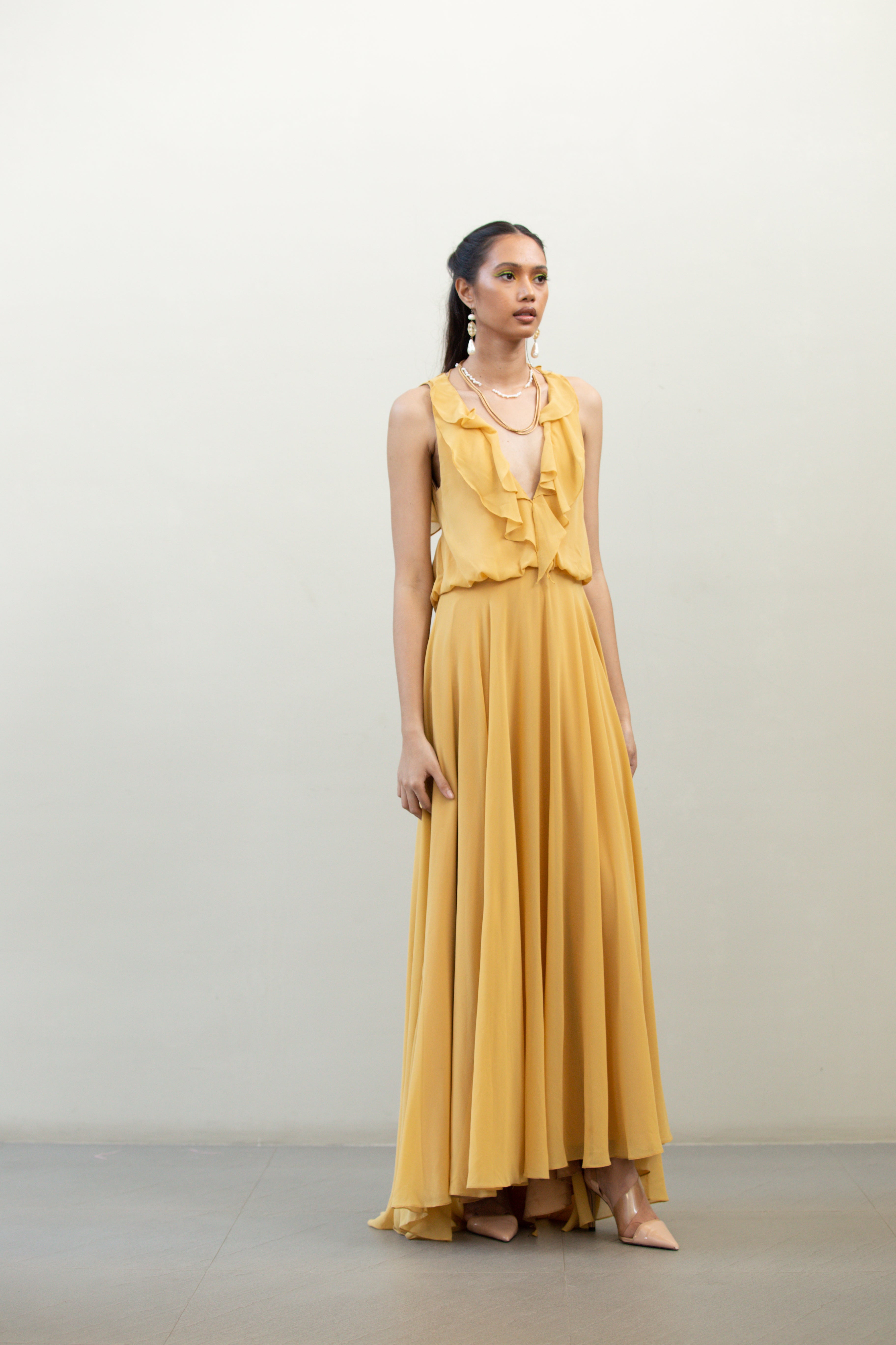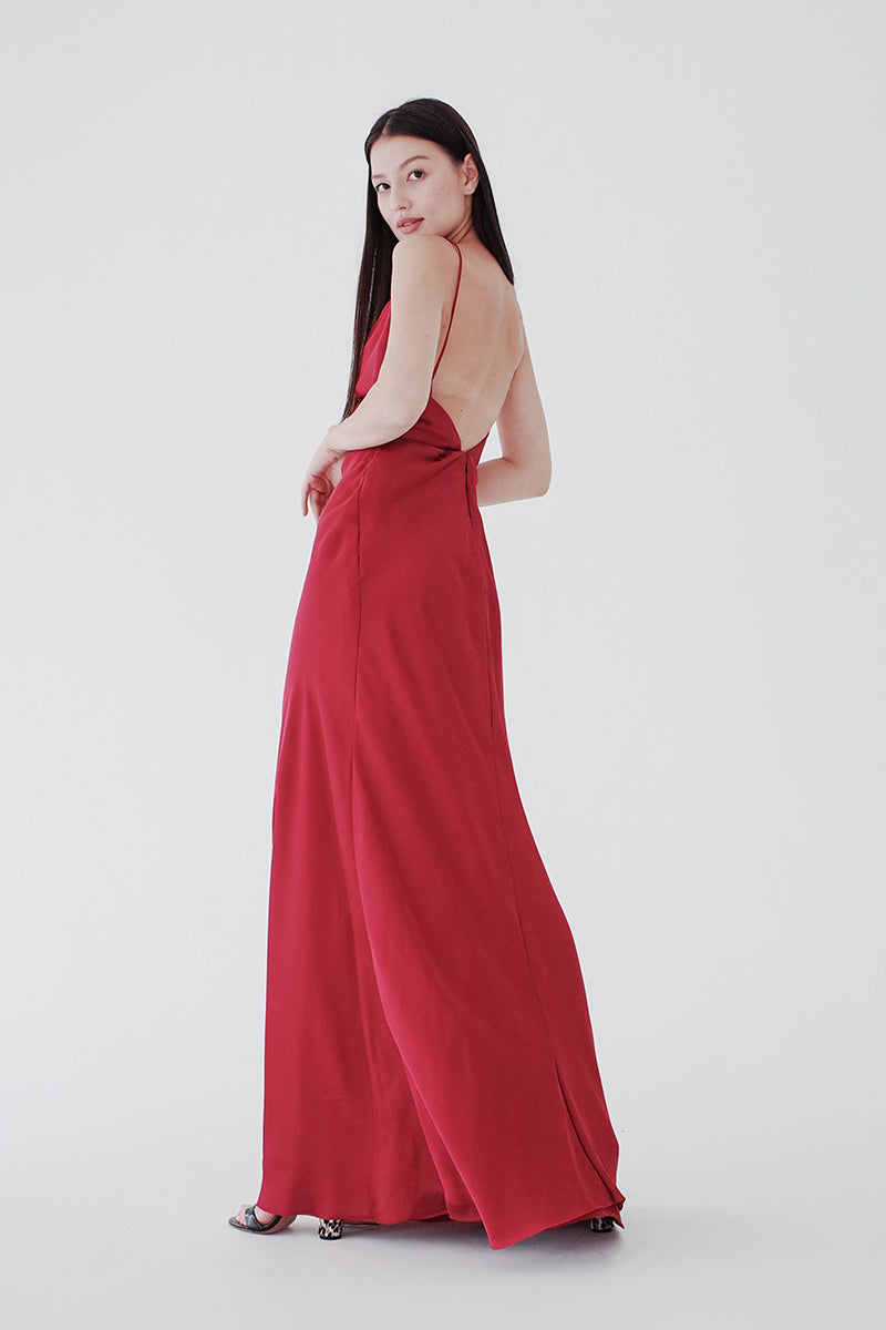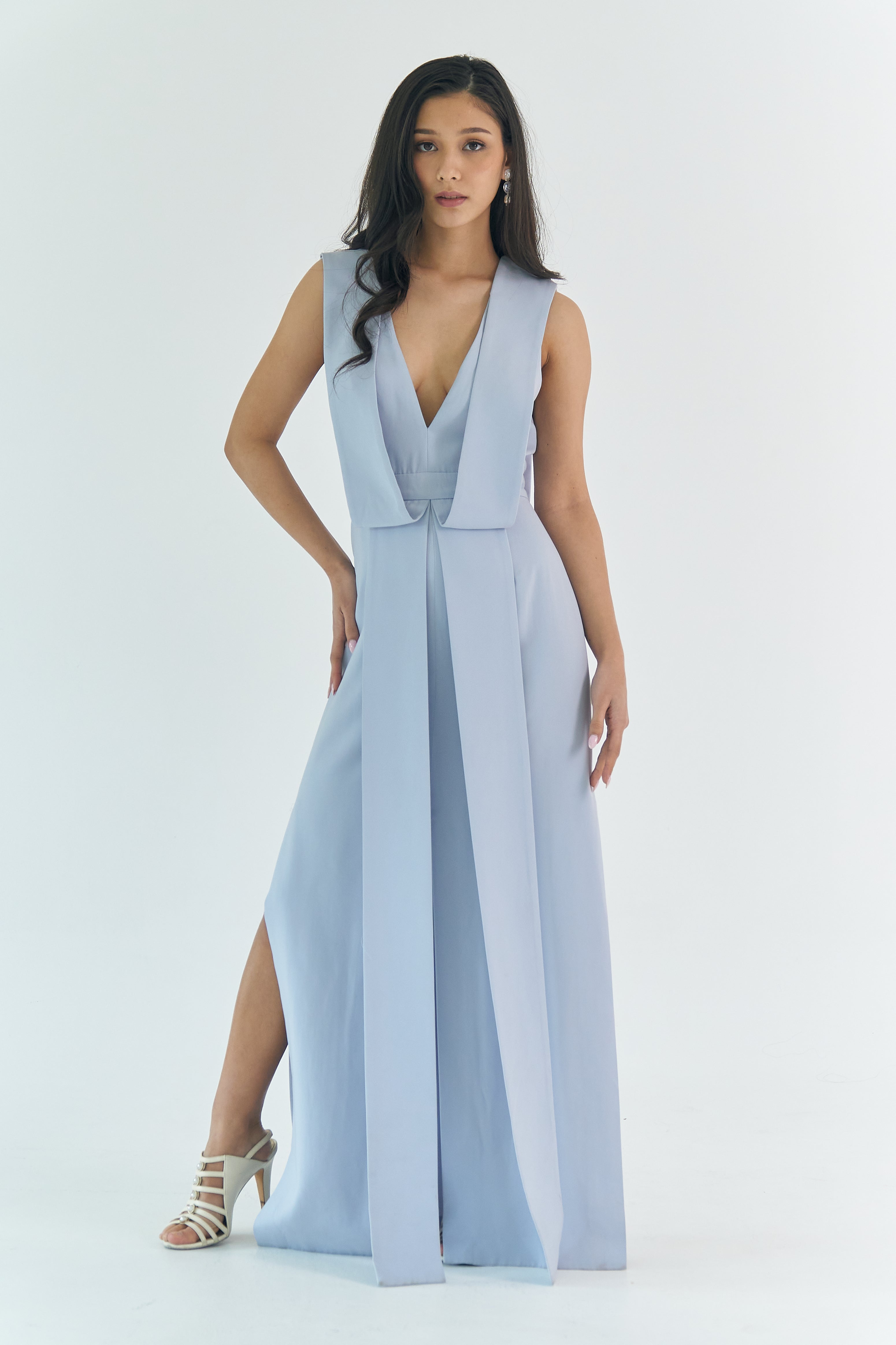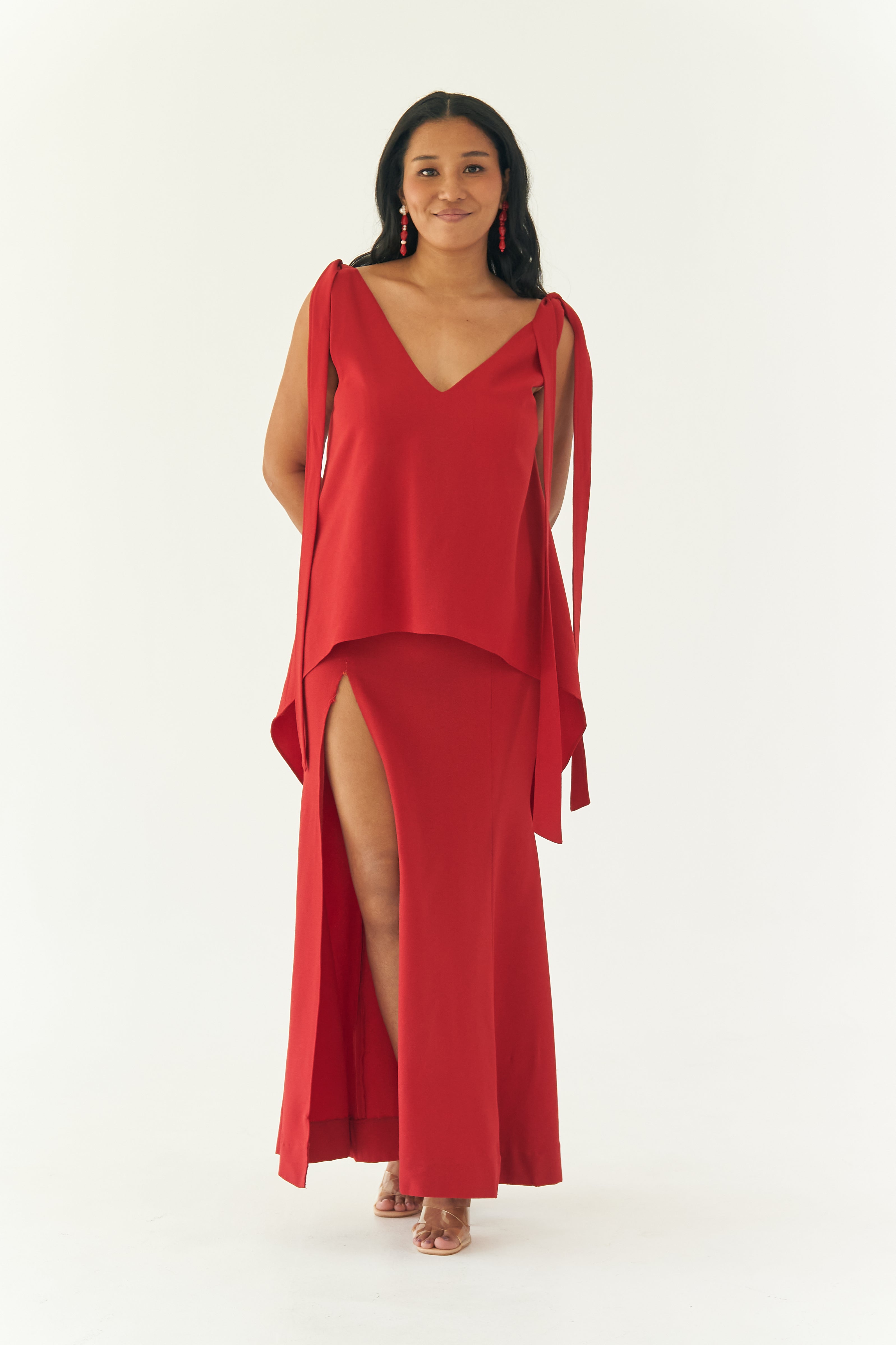 Maroon Gazar with Tulle Overlay Sleeveless Gown