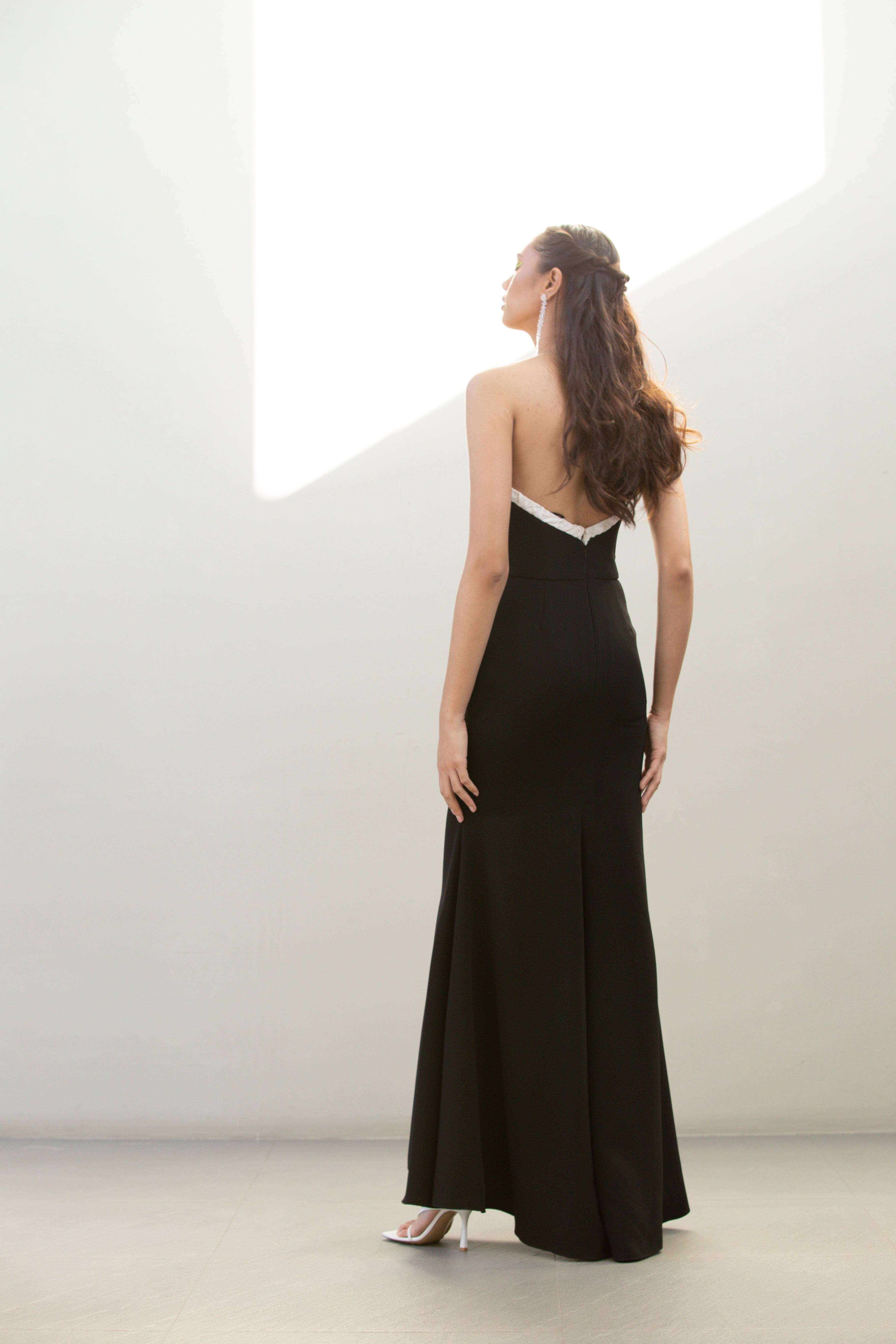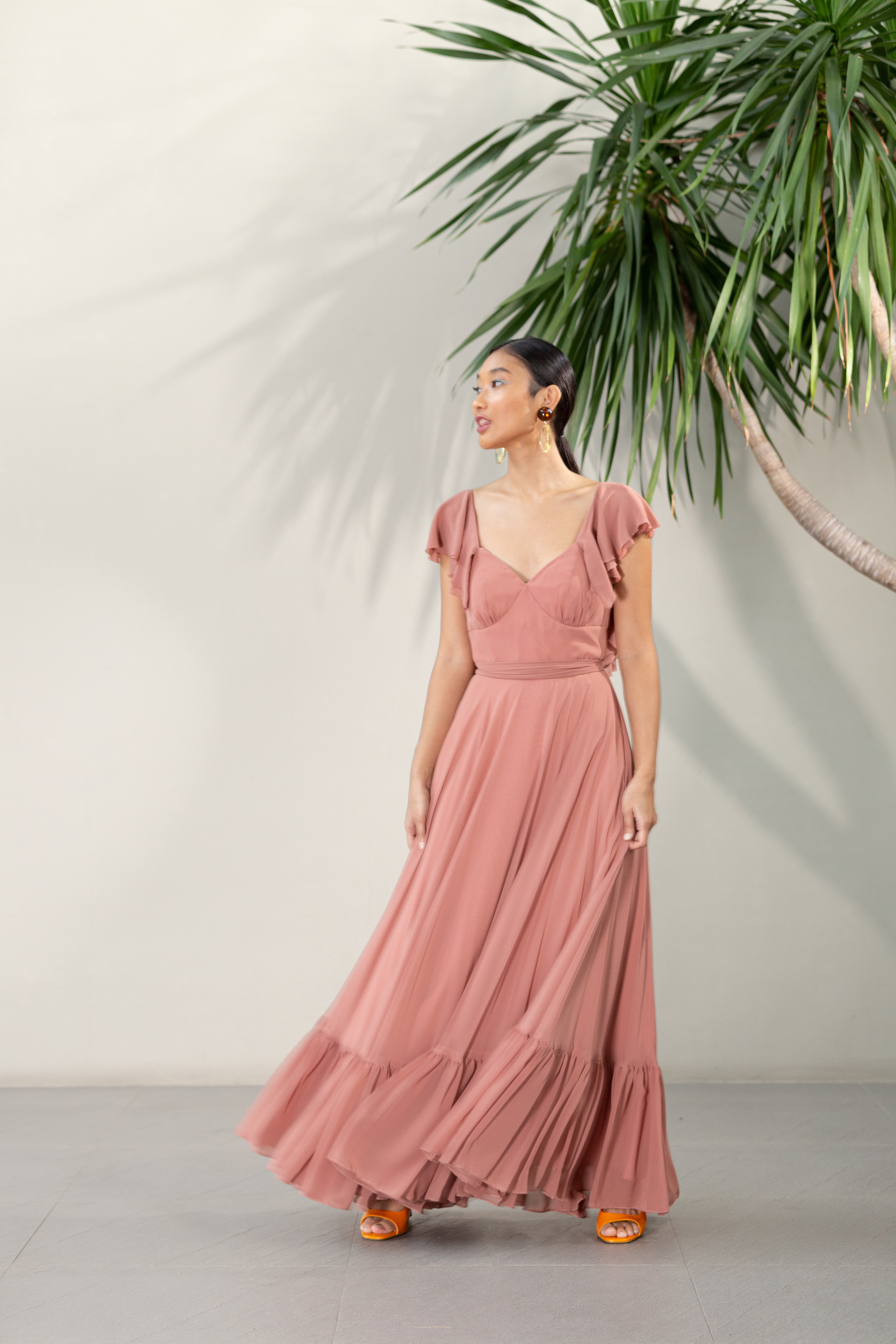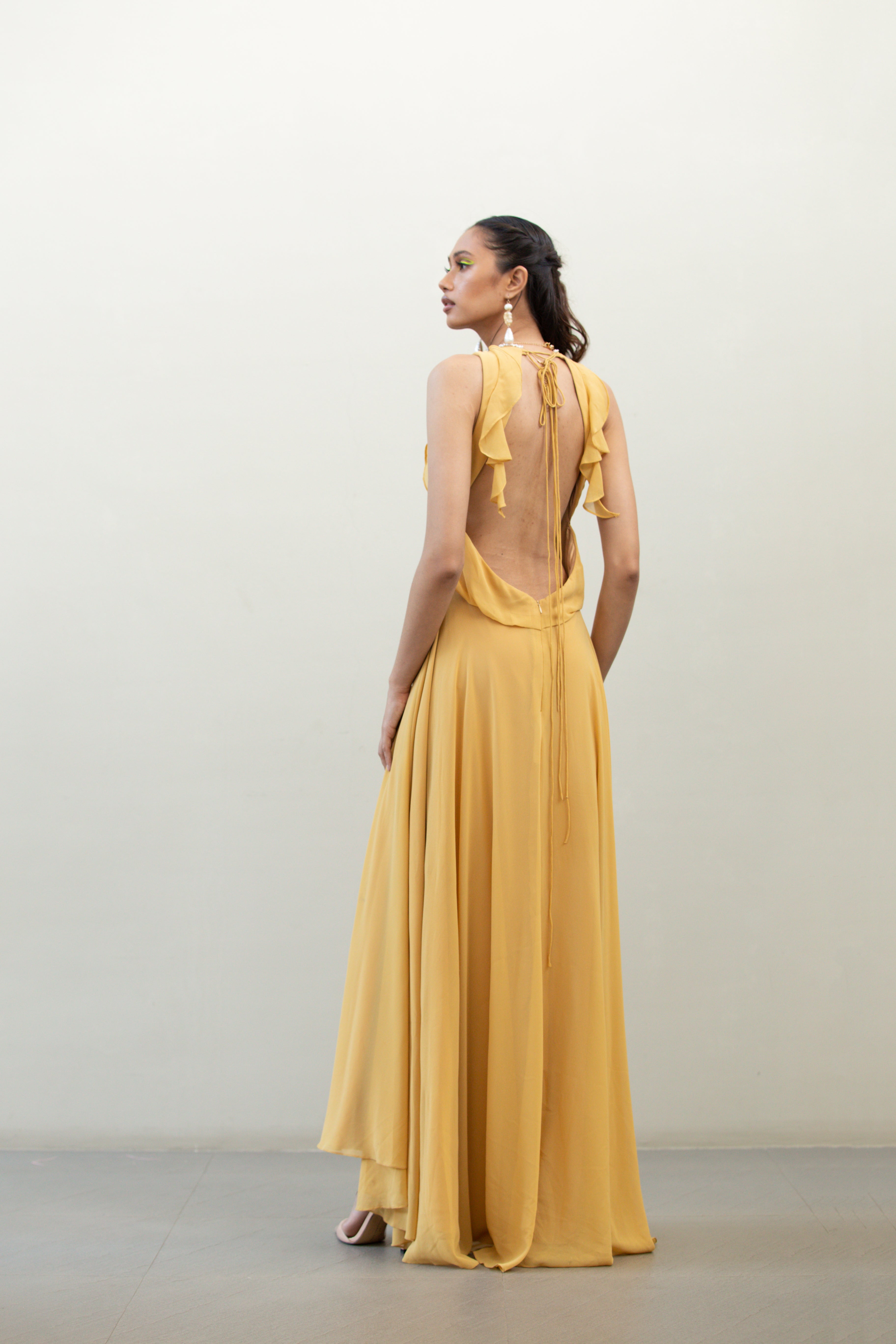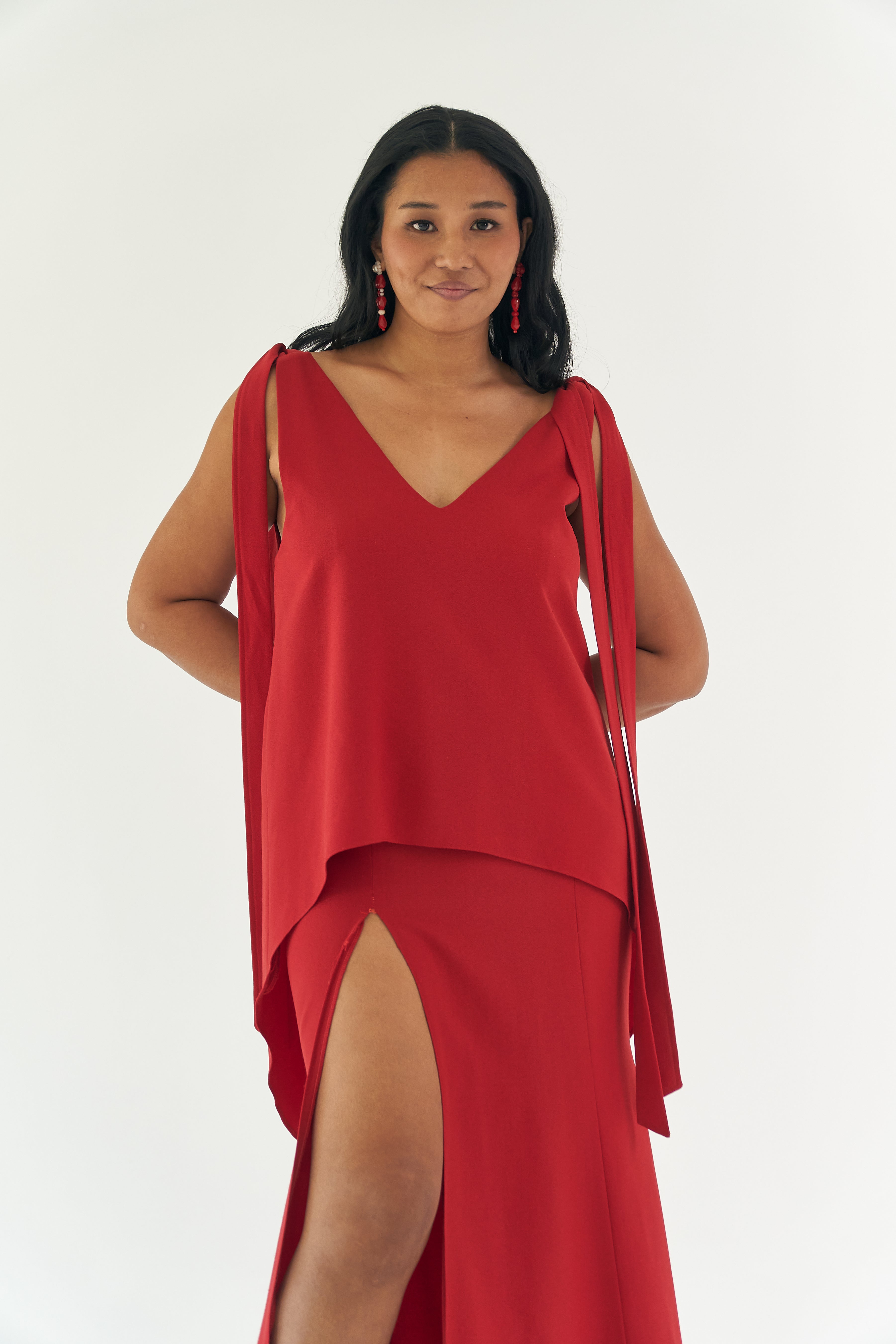 Maroon Gazar with Tulle Overlay Sleeveless Gown