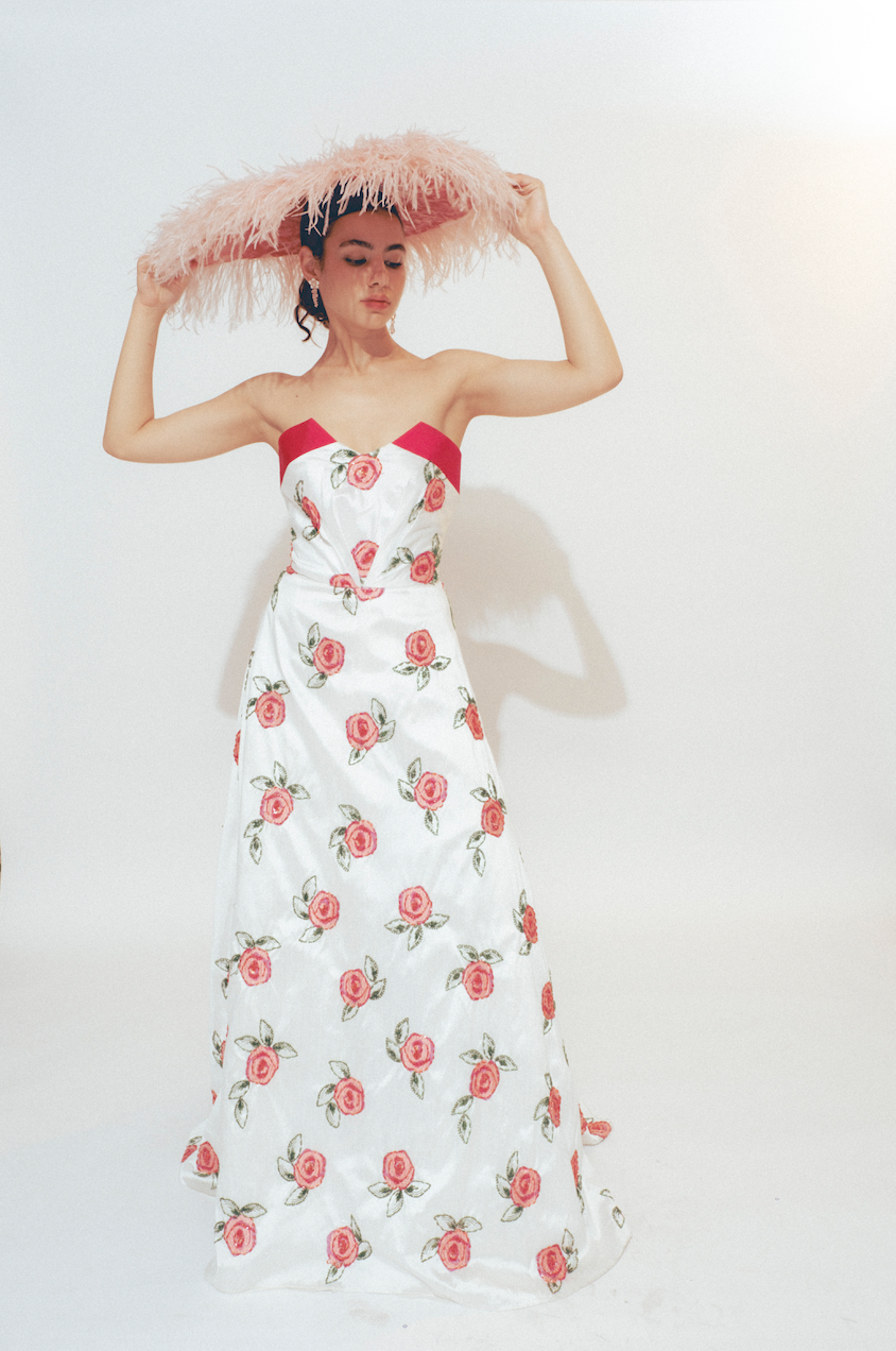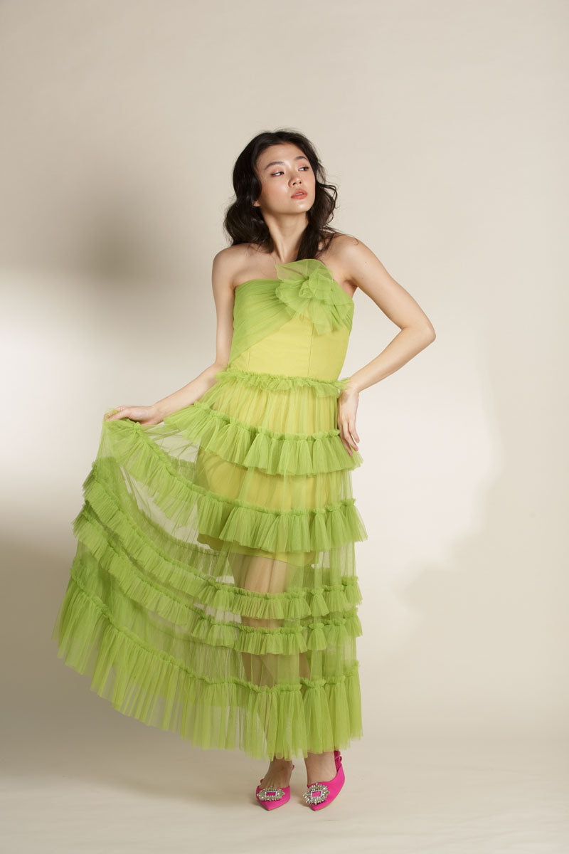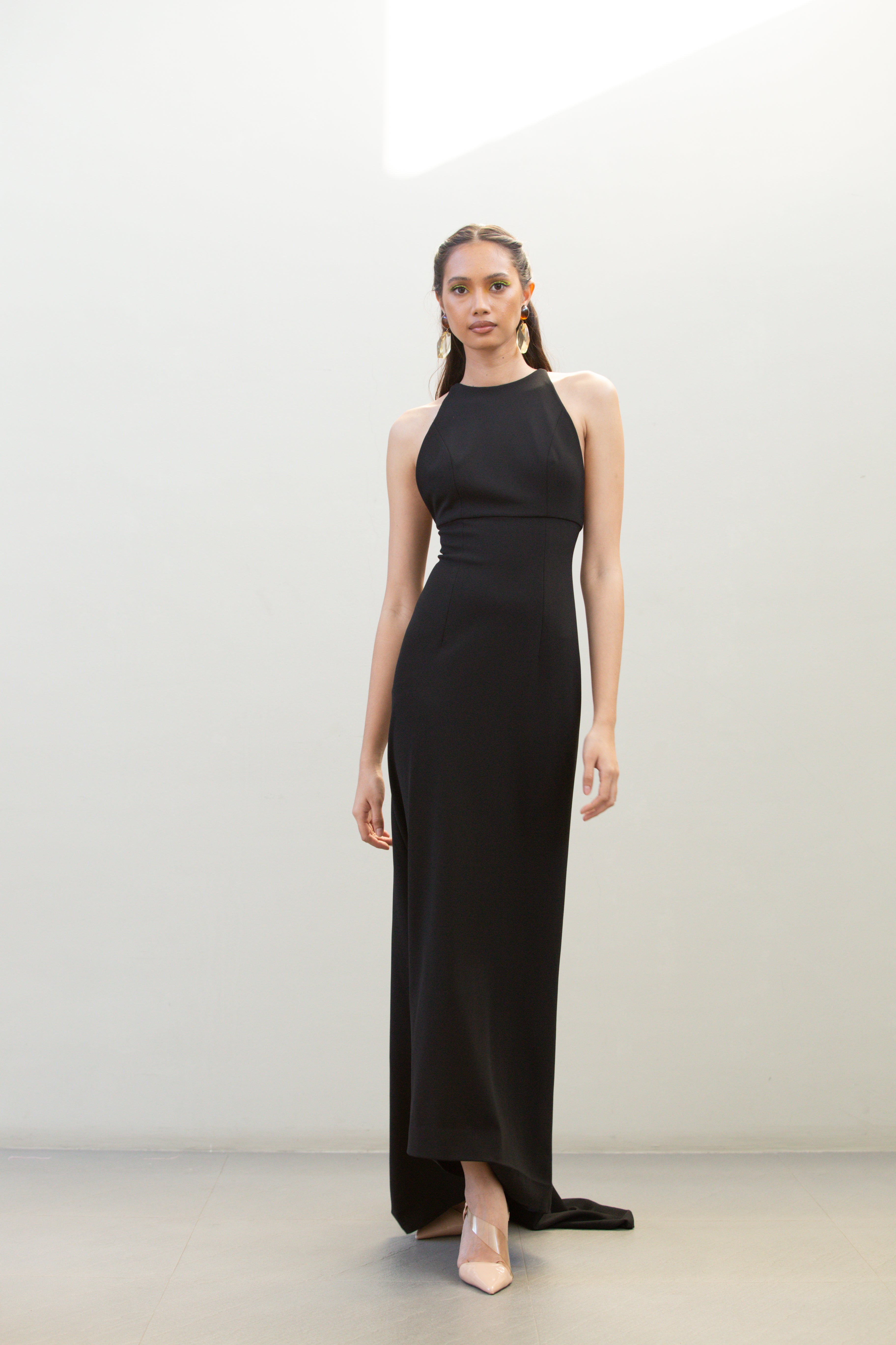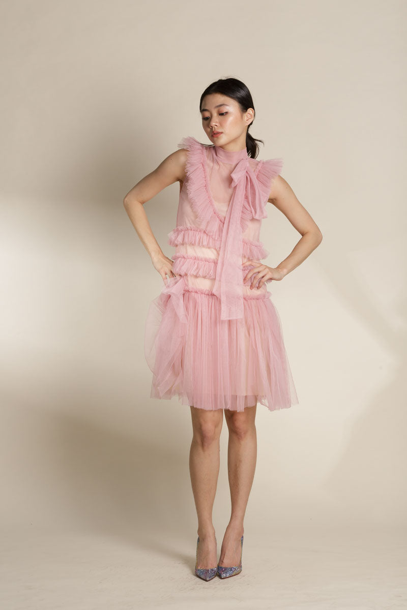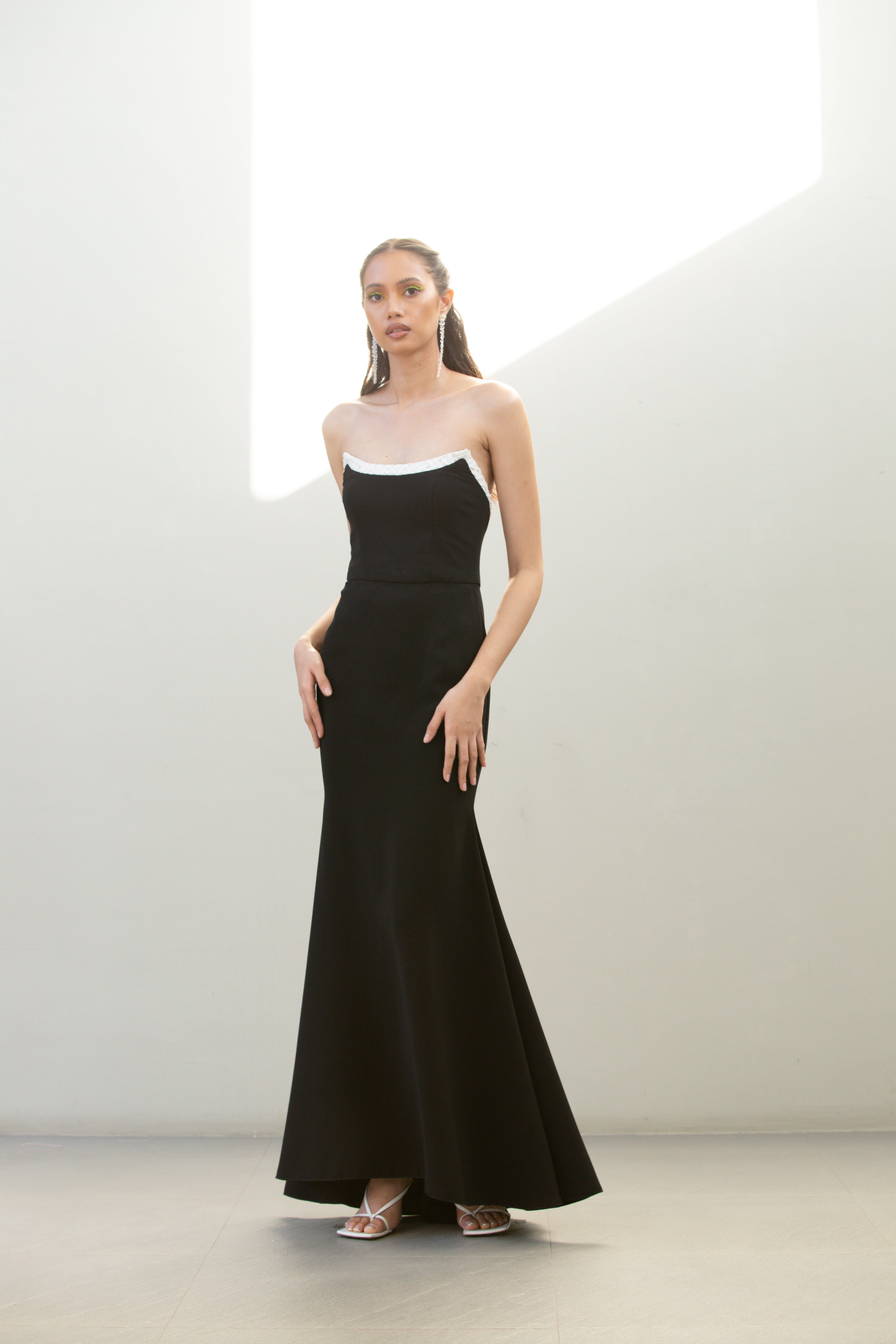 Maroon Gazar with Tulle Overlay Sleeveless Gown