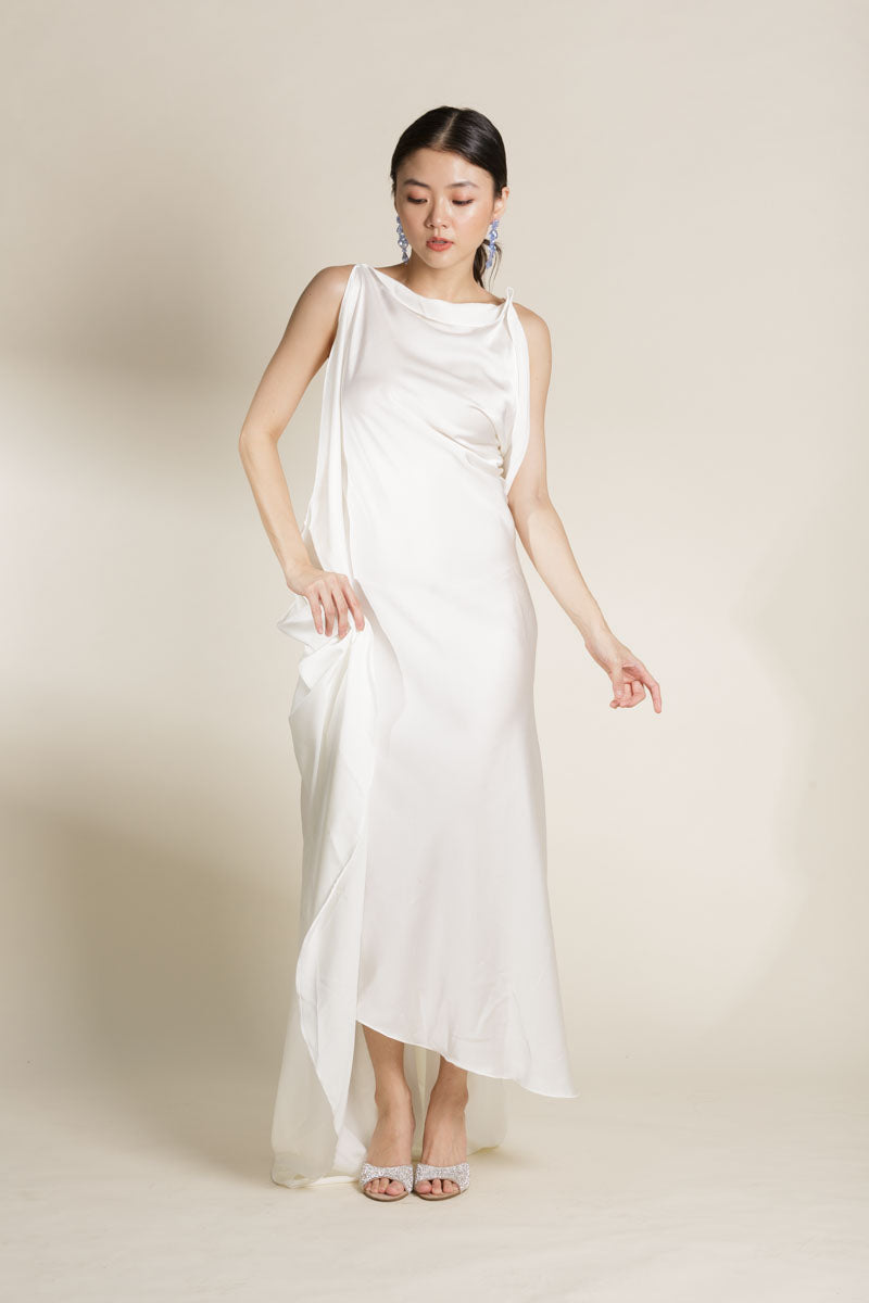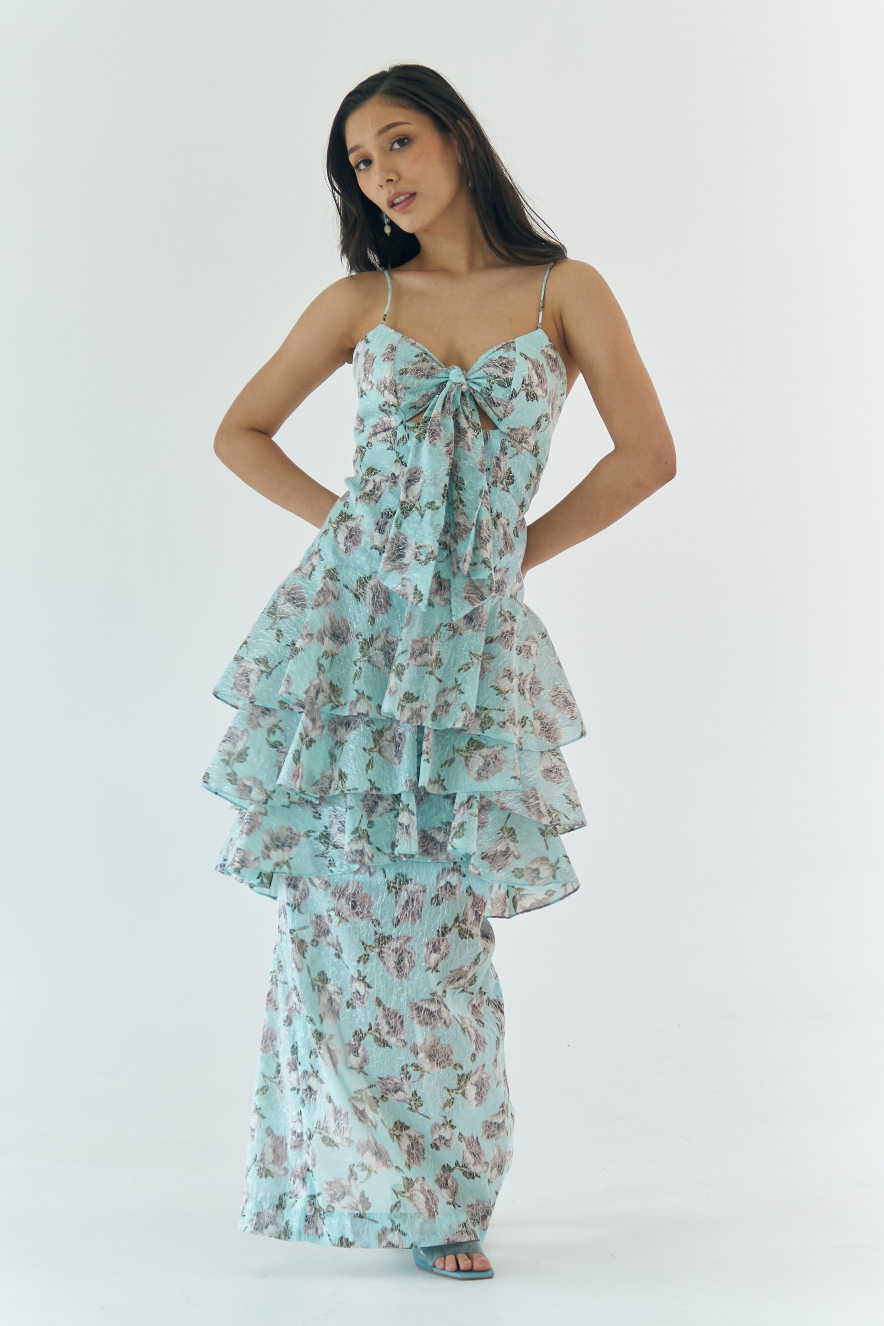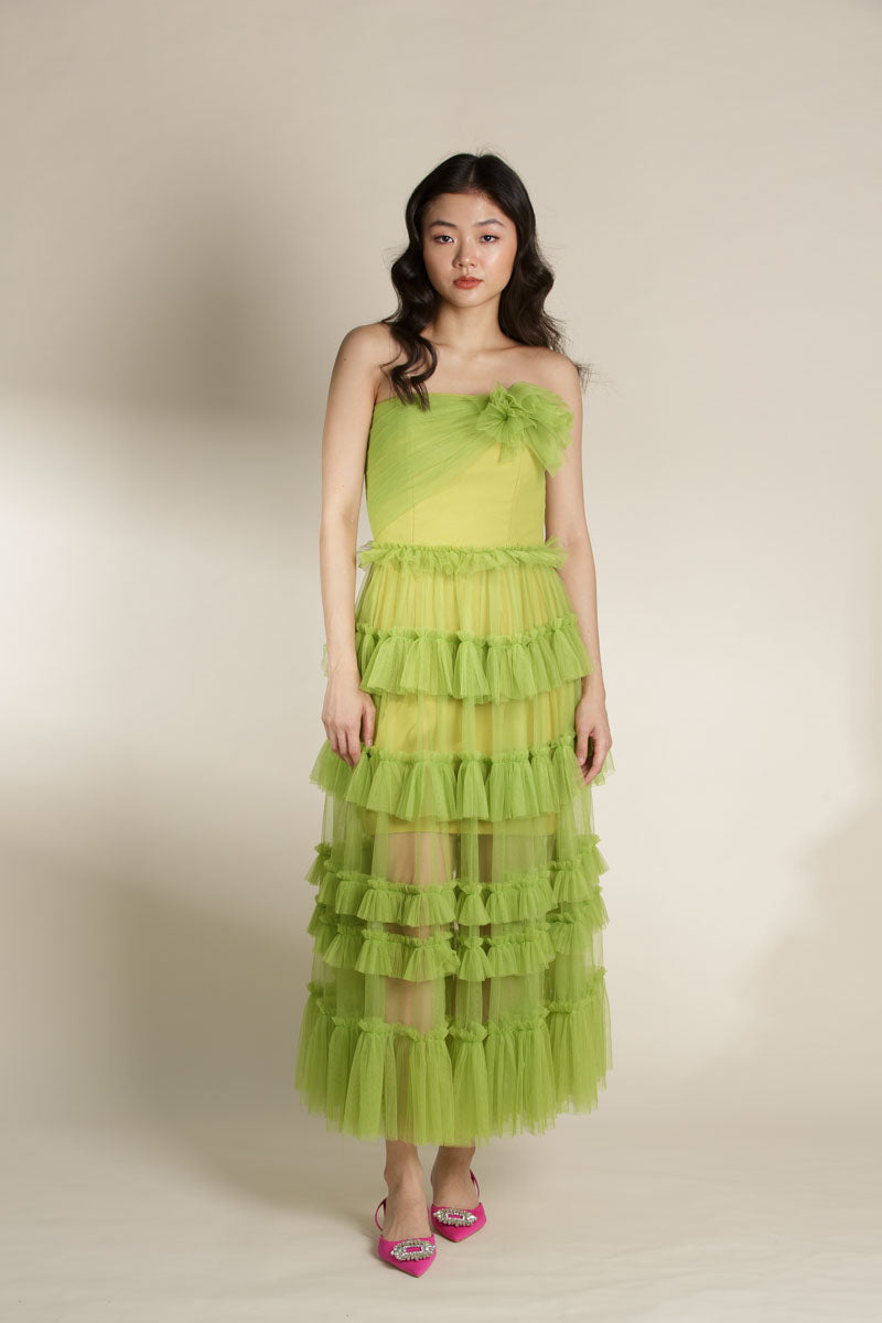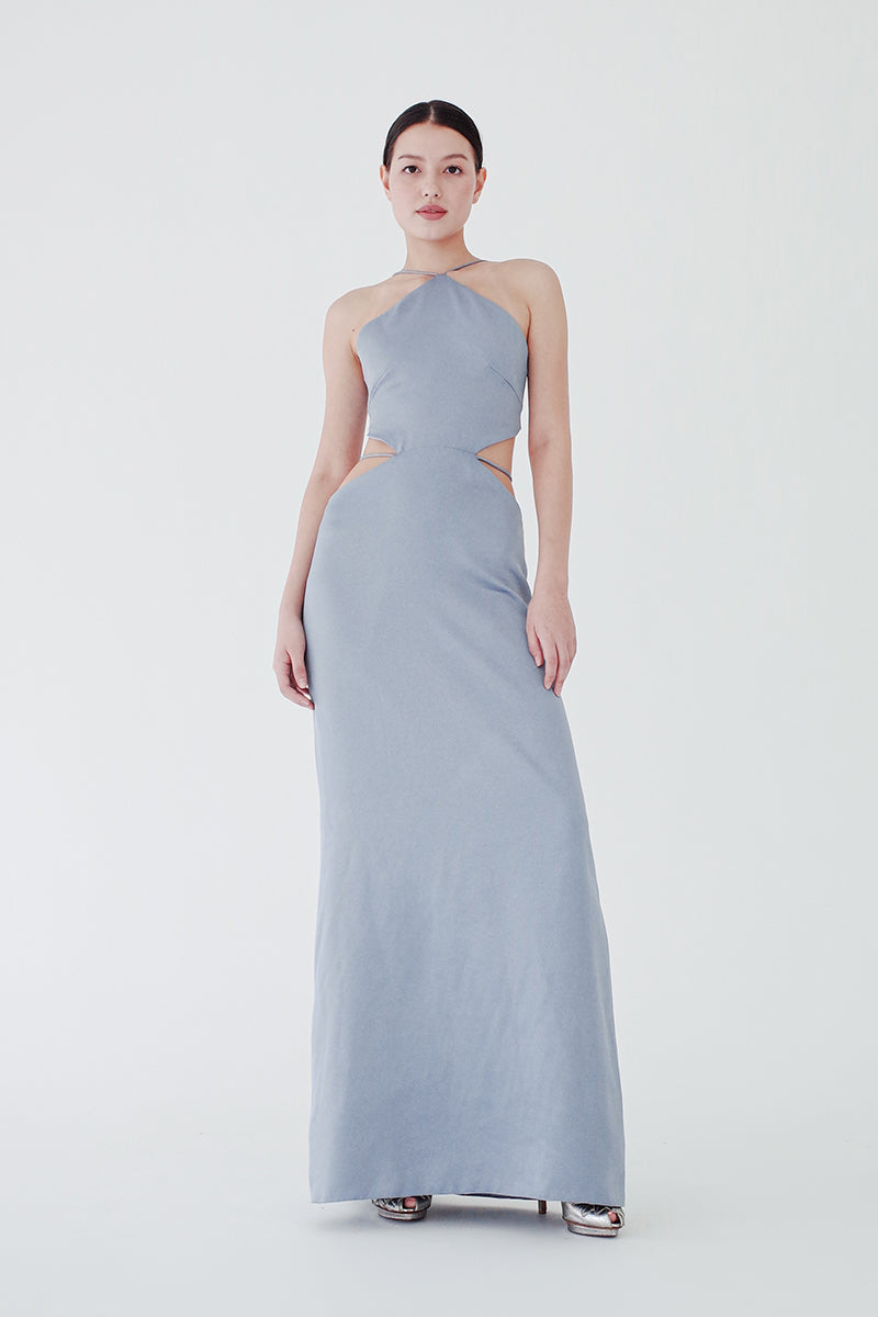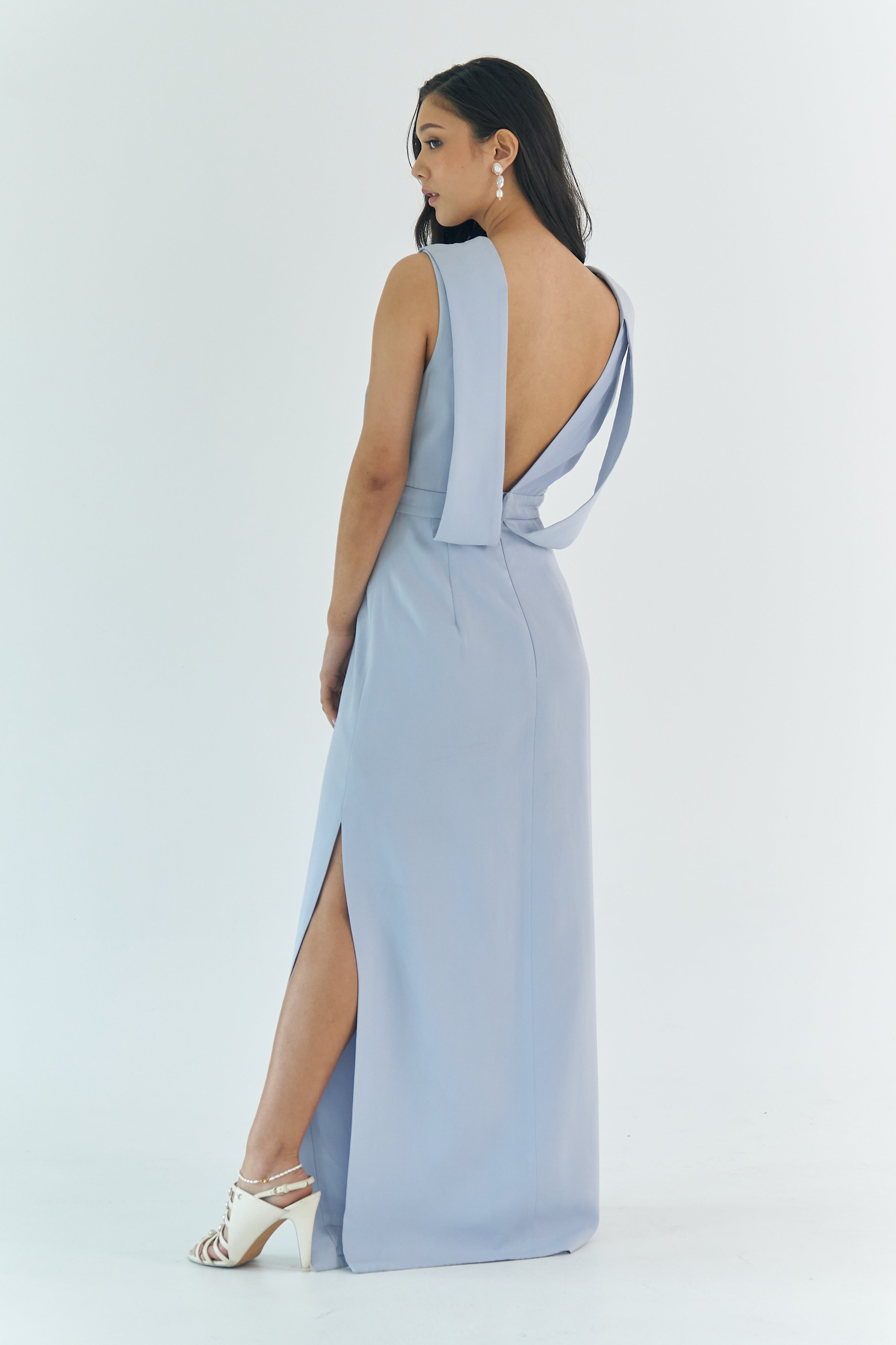 Maroon Gazar with Tulle Overlay Sleeveless Gown