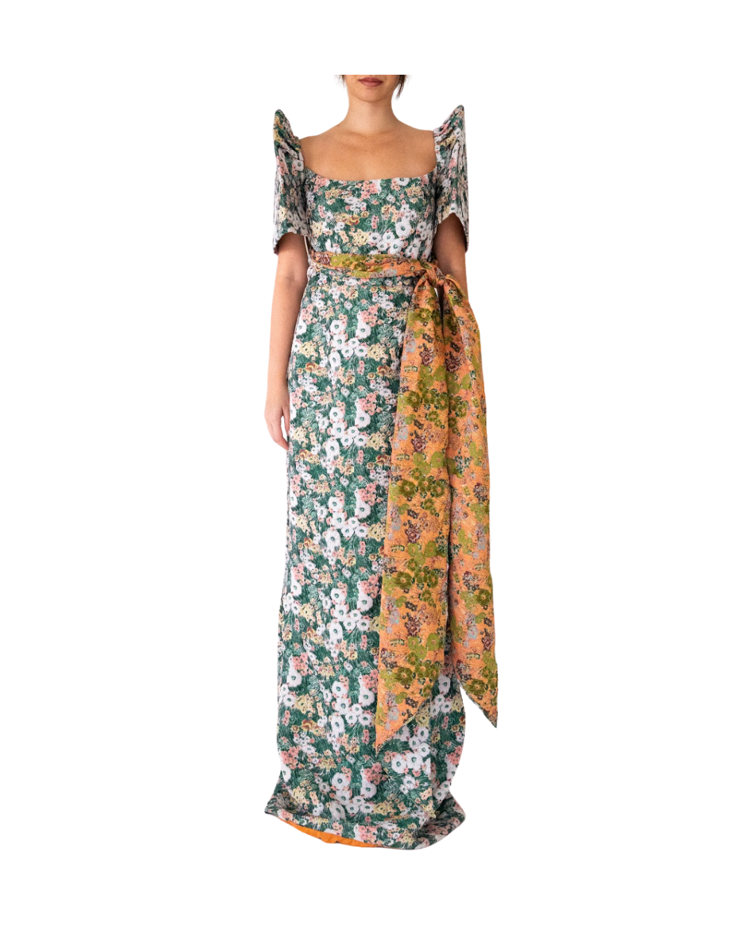 Orange Gazar Dress with Floral and Slit Details