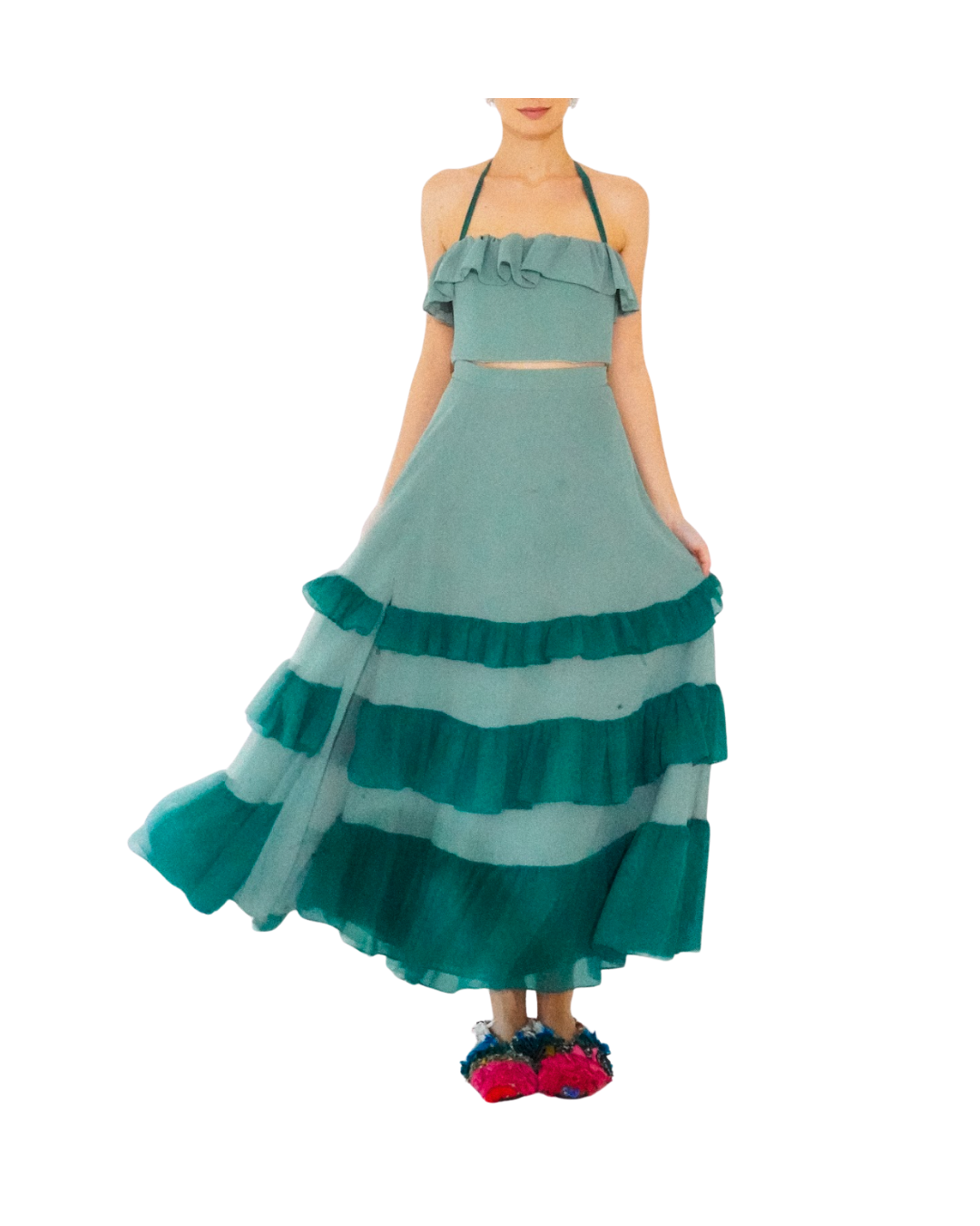 Seafoam Top and Skirt Set with Ruffles