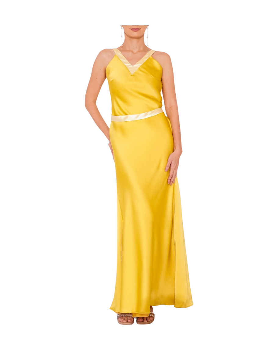 Yellow Silk V-Neck Dress