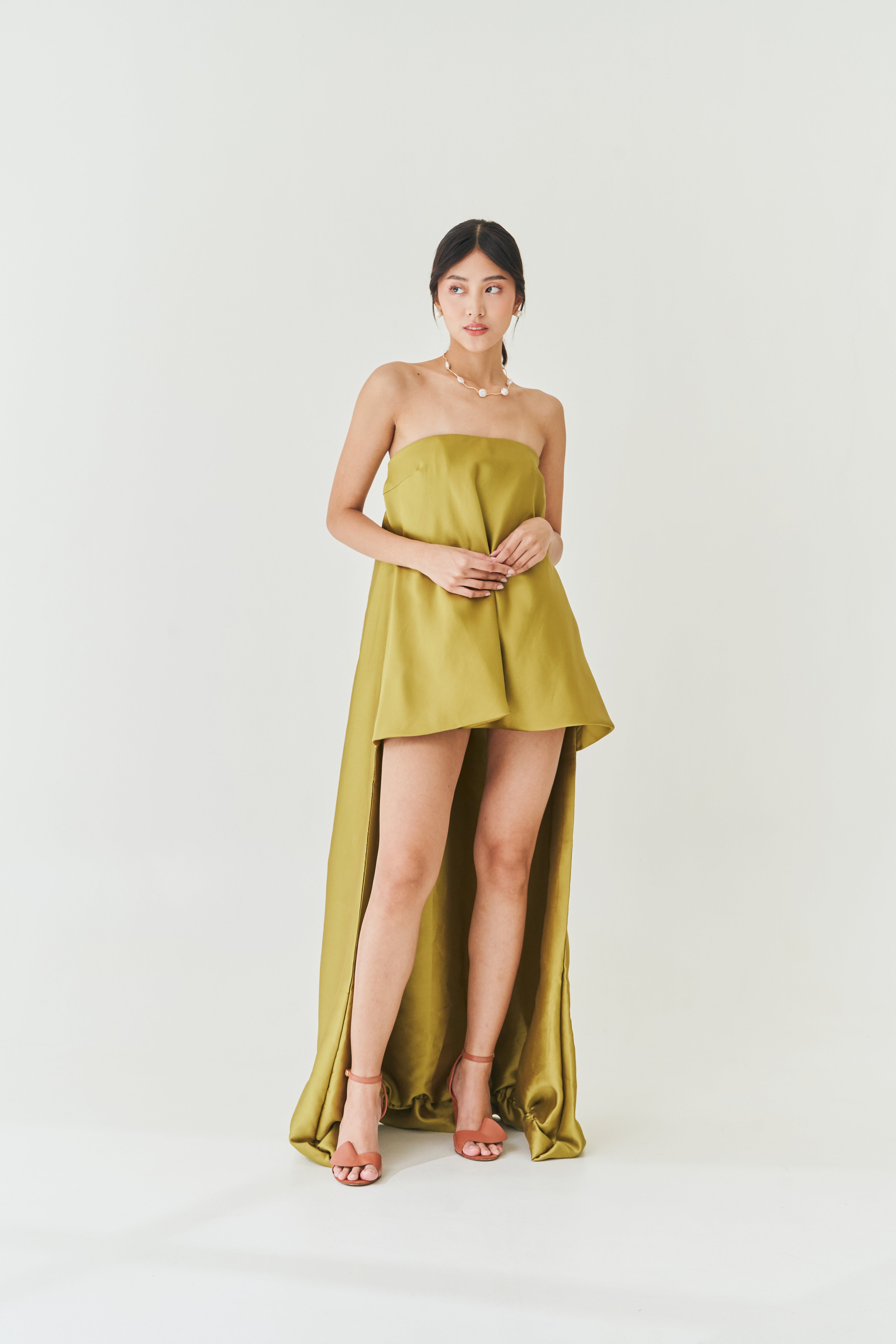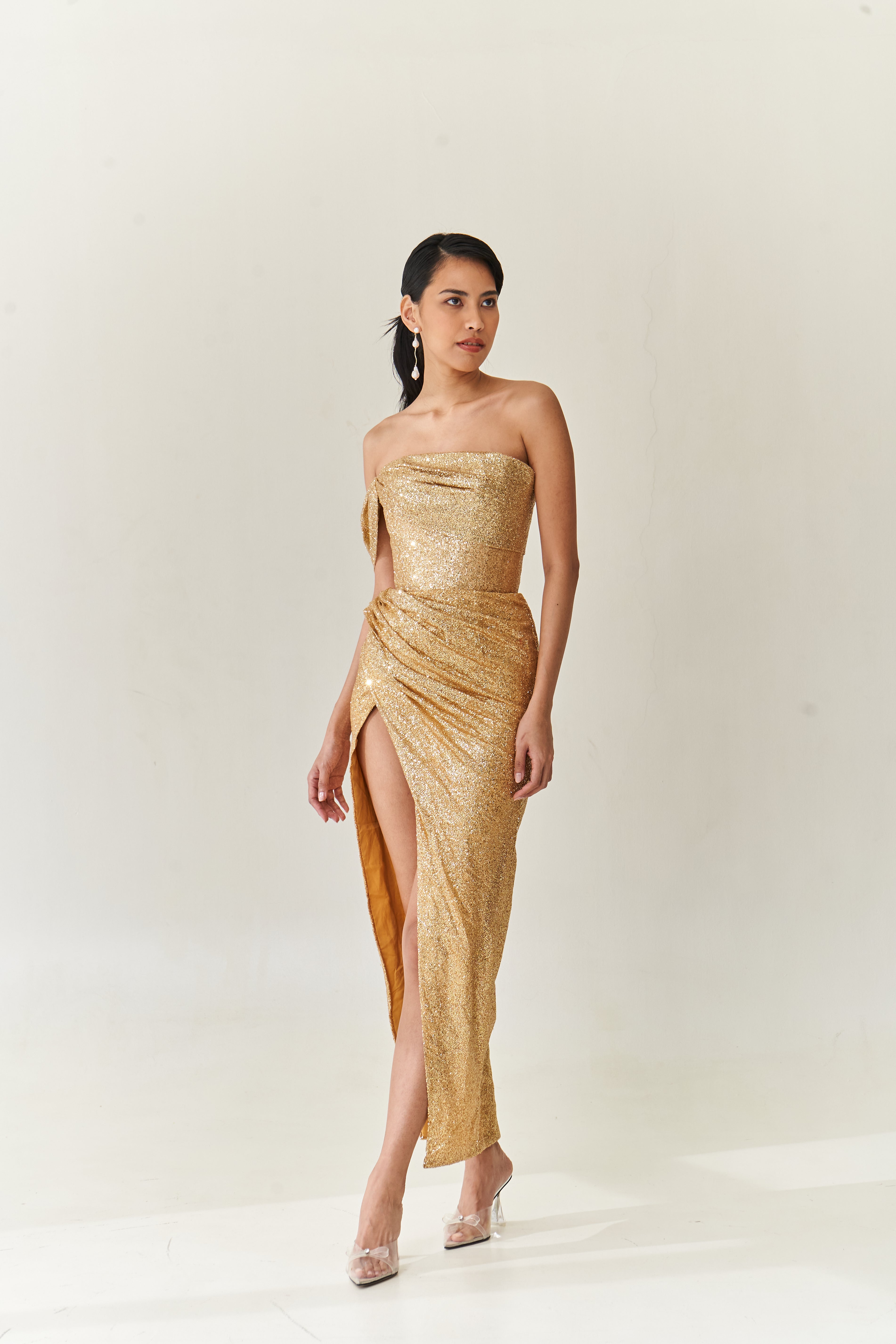 Strapless Gold Drape Dress