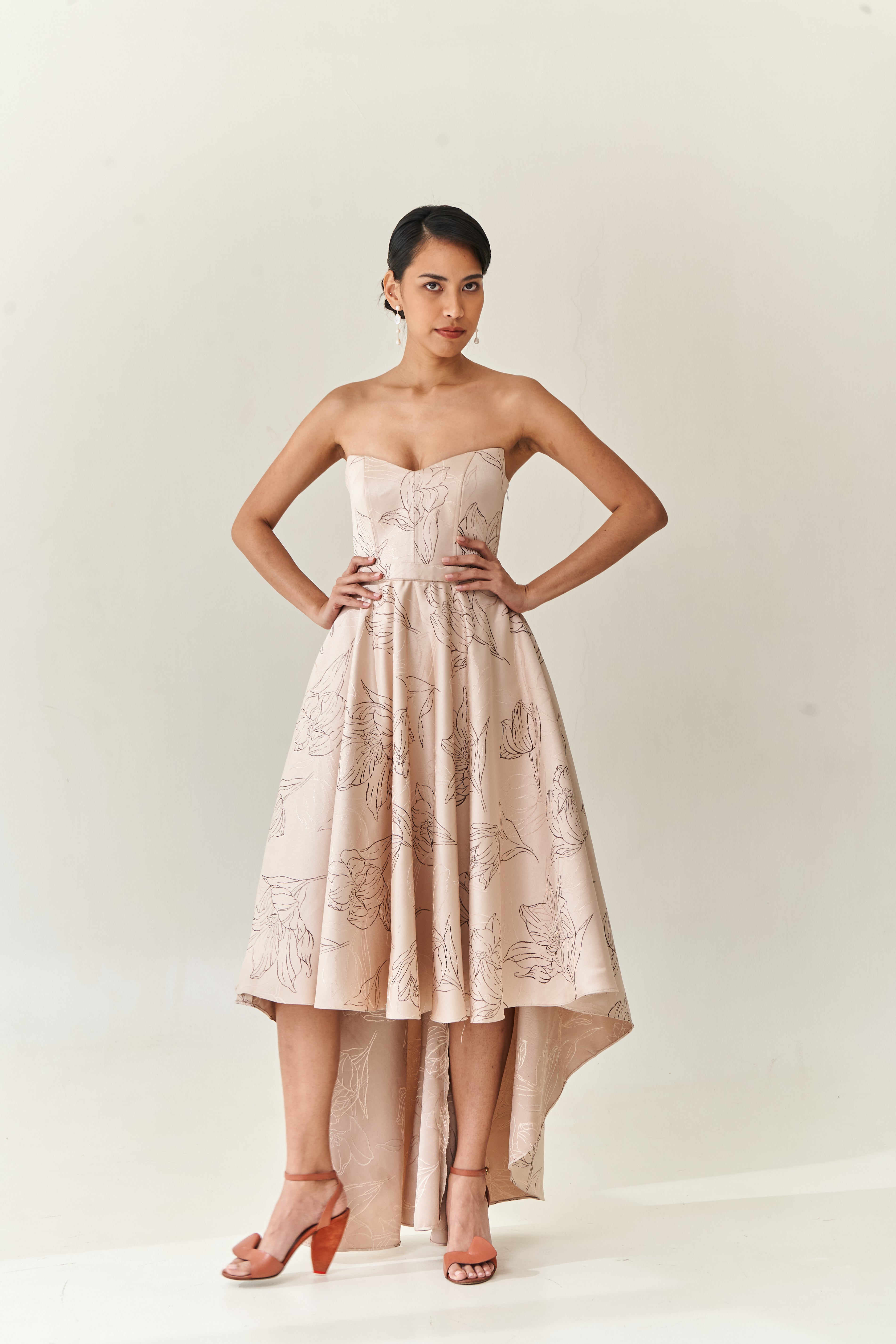 Strapless High Low Printed Gown