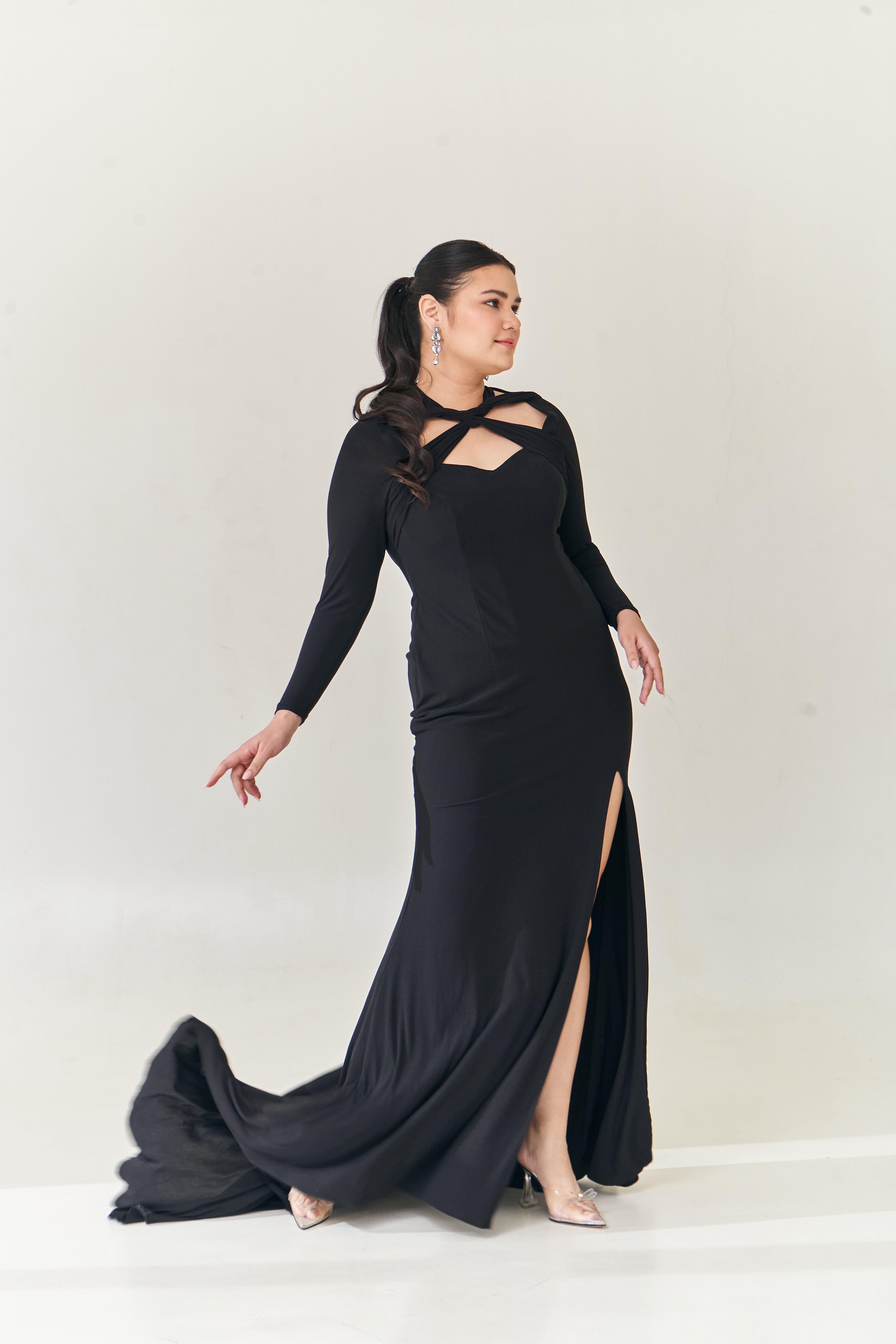 Long Sleeve Black Knot Gown