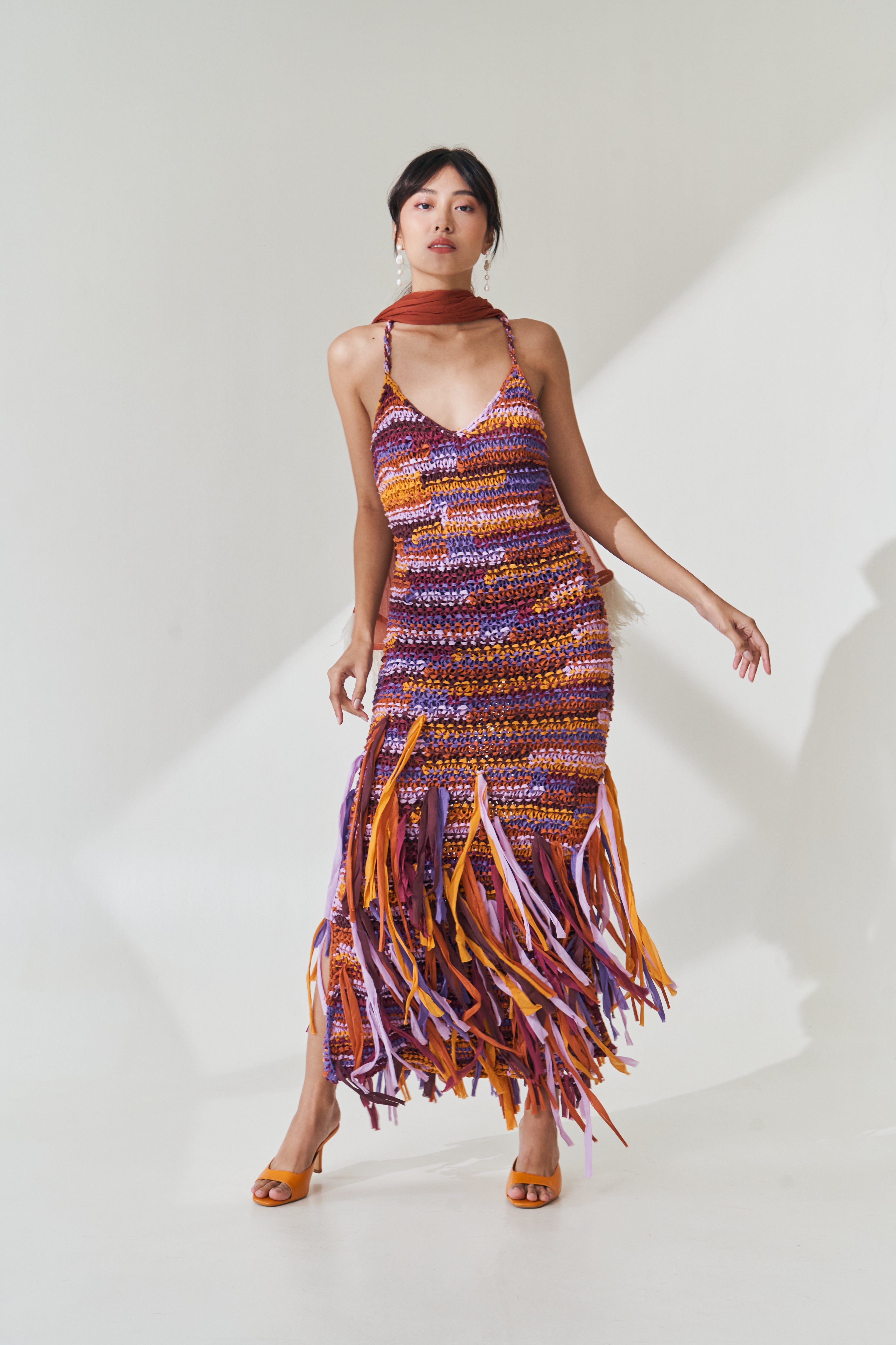 Multi-color Knit Fringe Dress