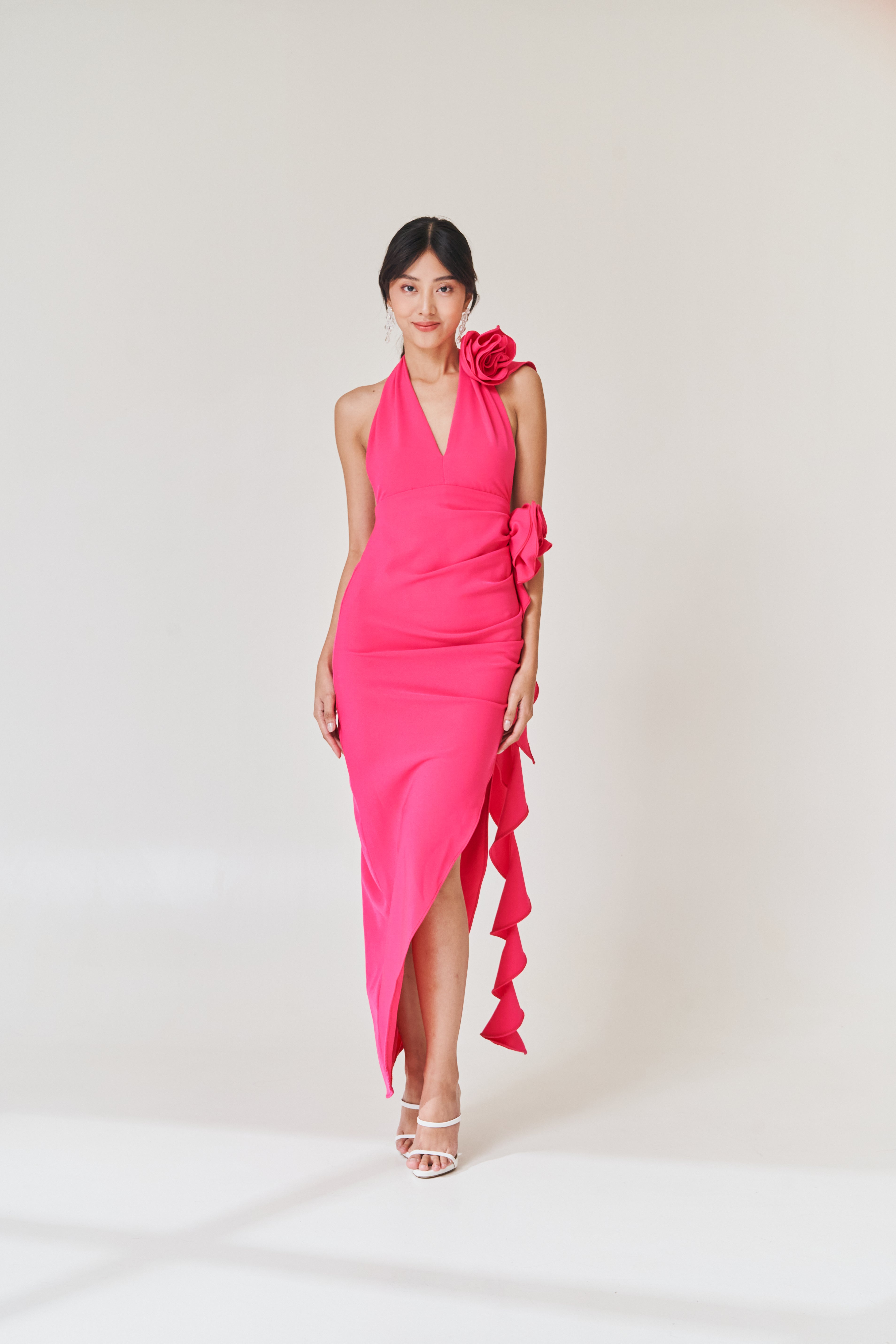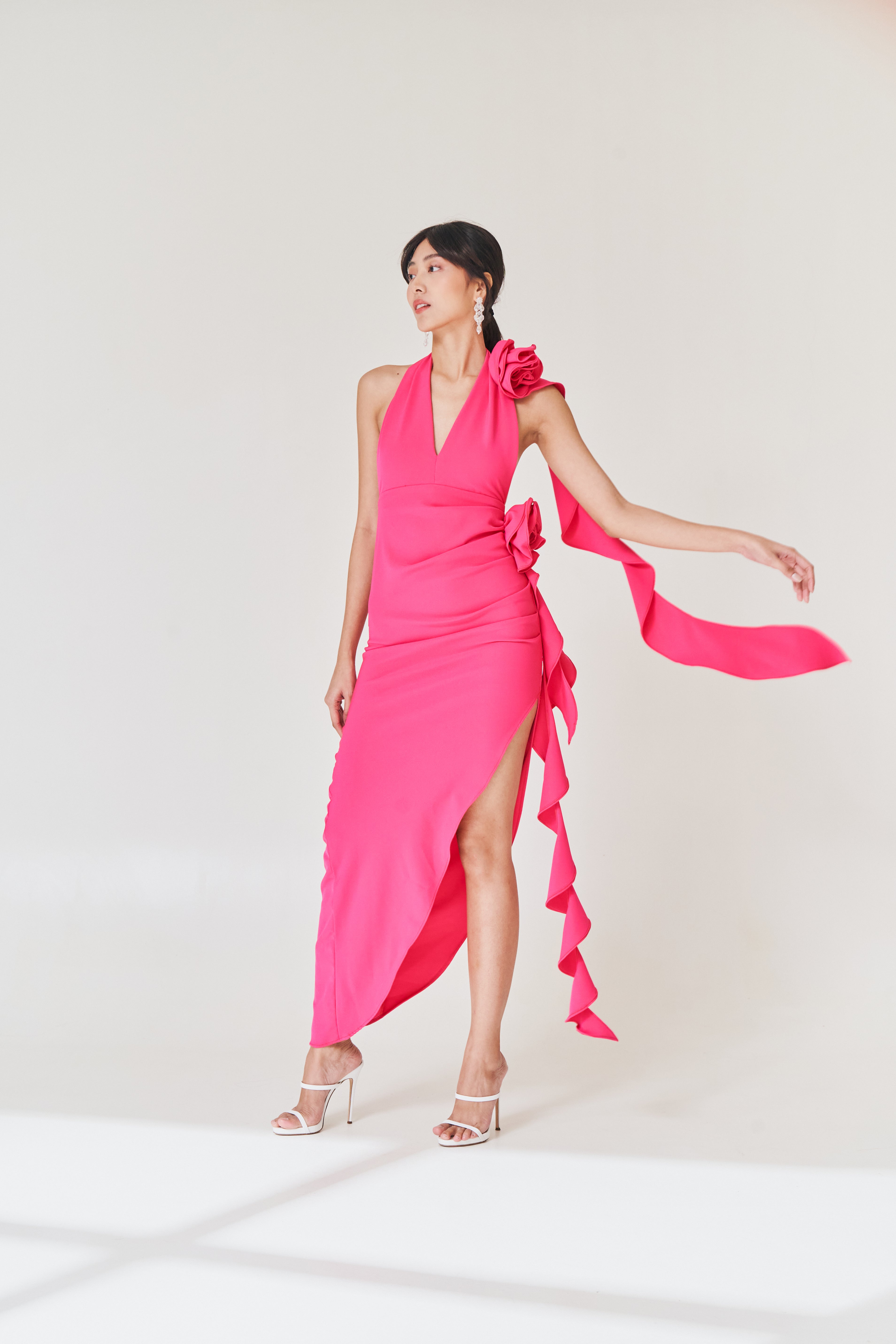 Pink Halter Ruffle Dress