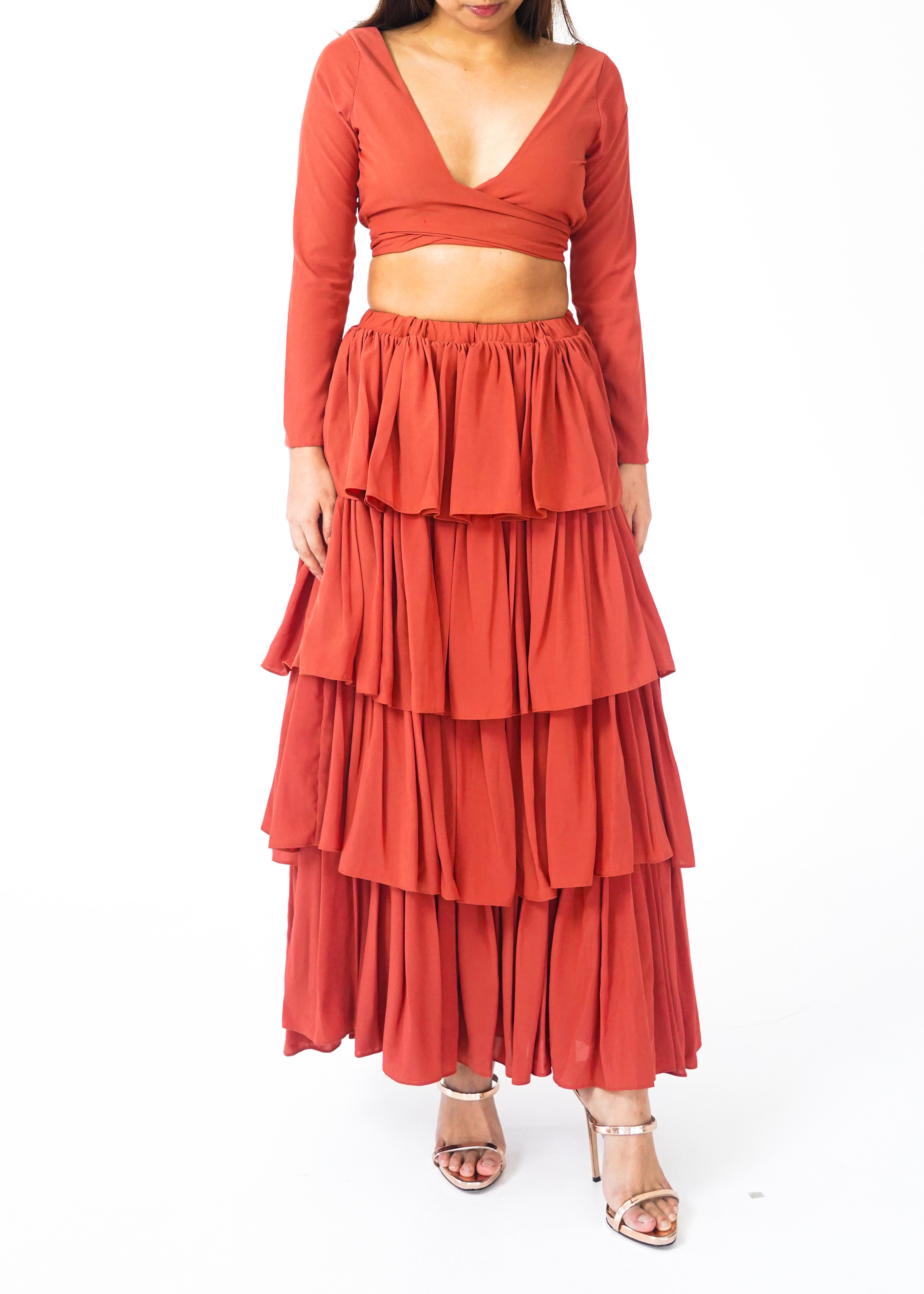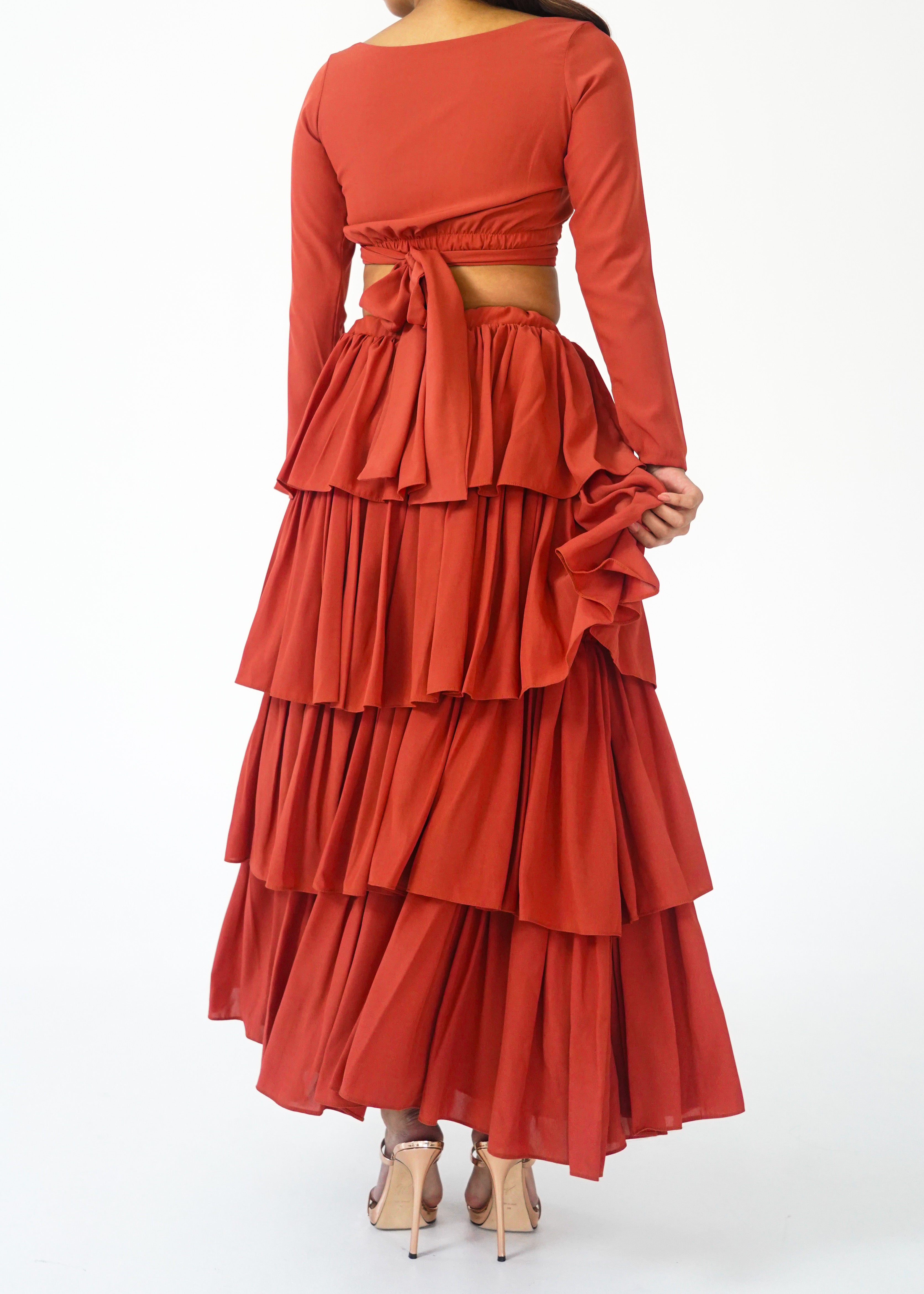 Rust Crop Longsleeve Top and Ruffle Skirt set