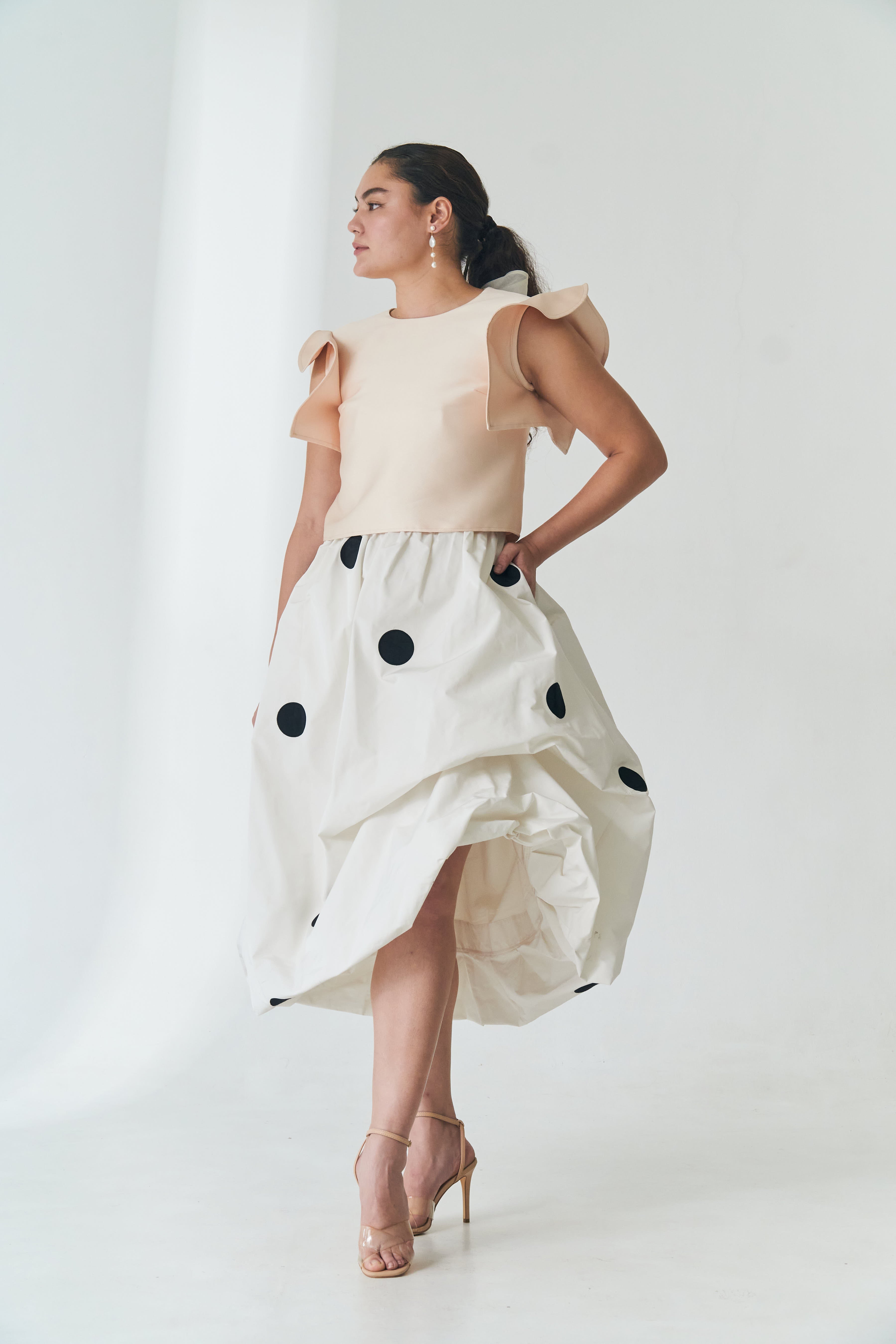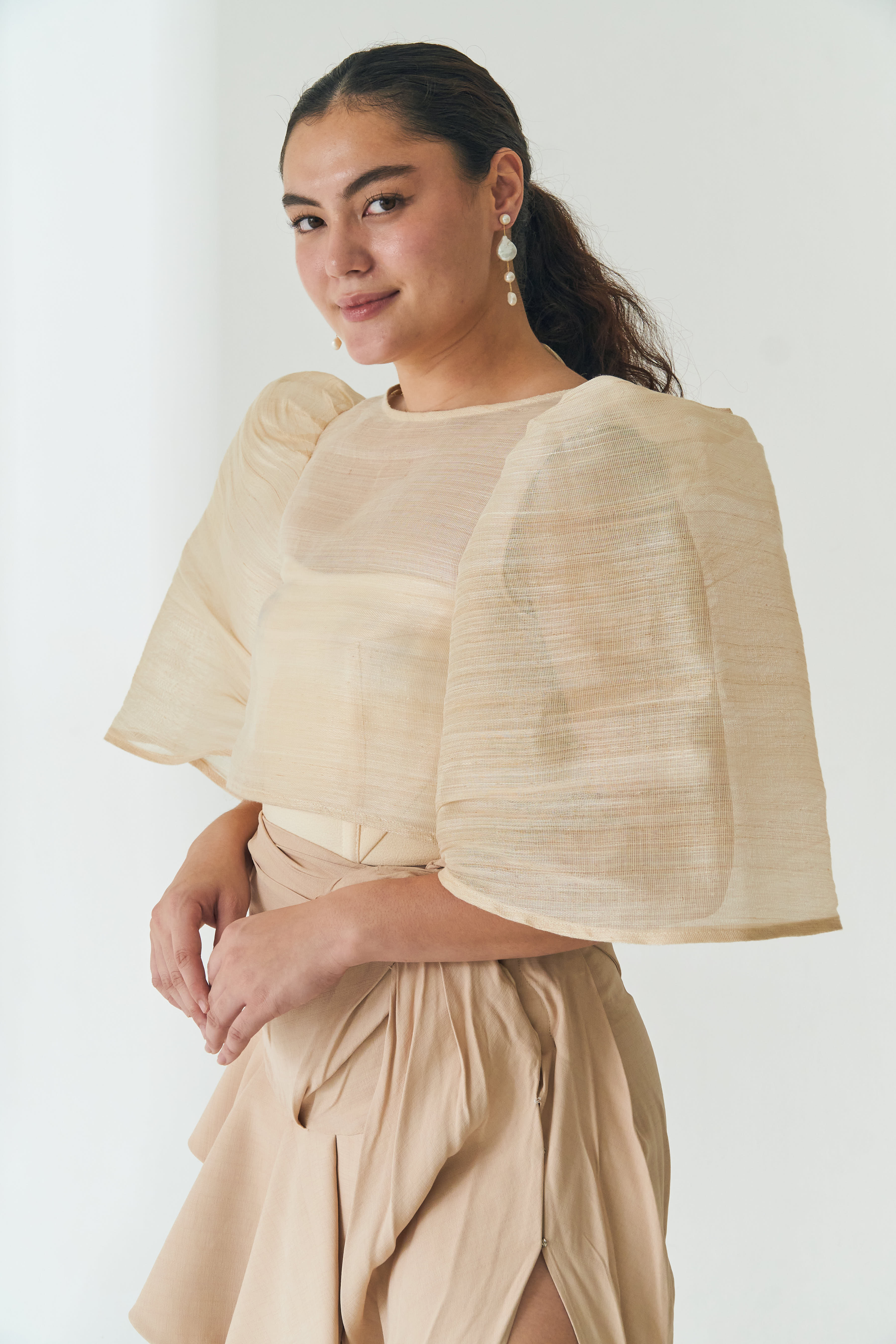 Weaved Puff Sleeved Top with Flared Piña Pants