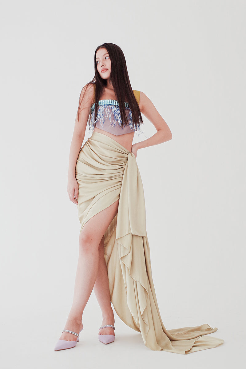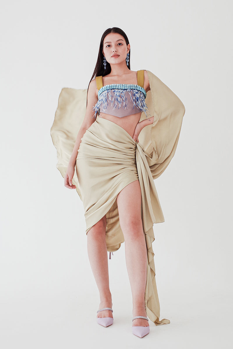 Halter Top with Arm Sleeves and Ruched Skirt Set