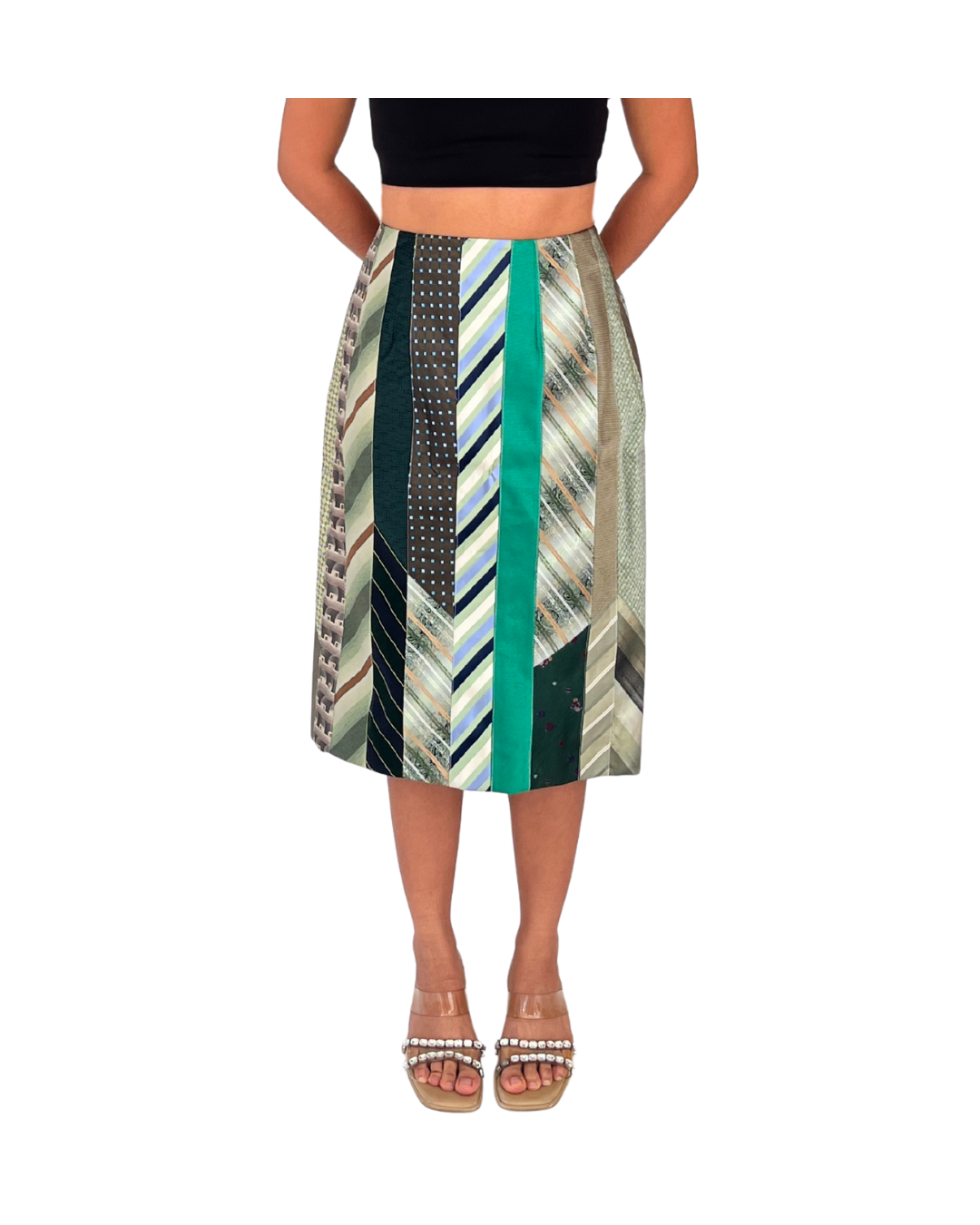 Mixed Tie Midi Skirt in Verde