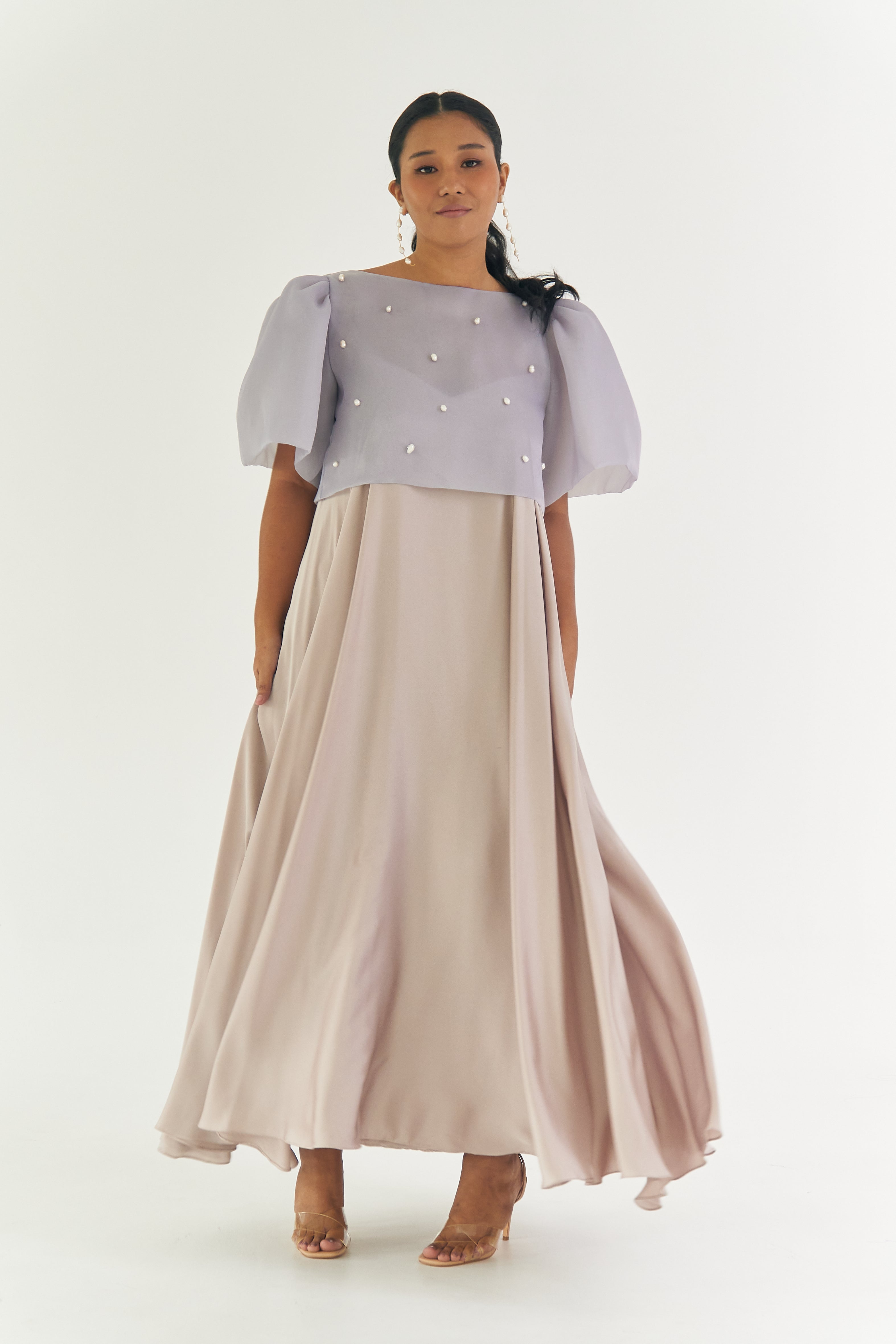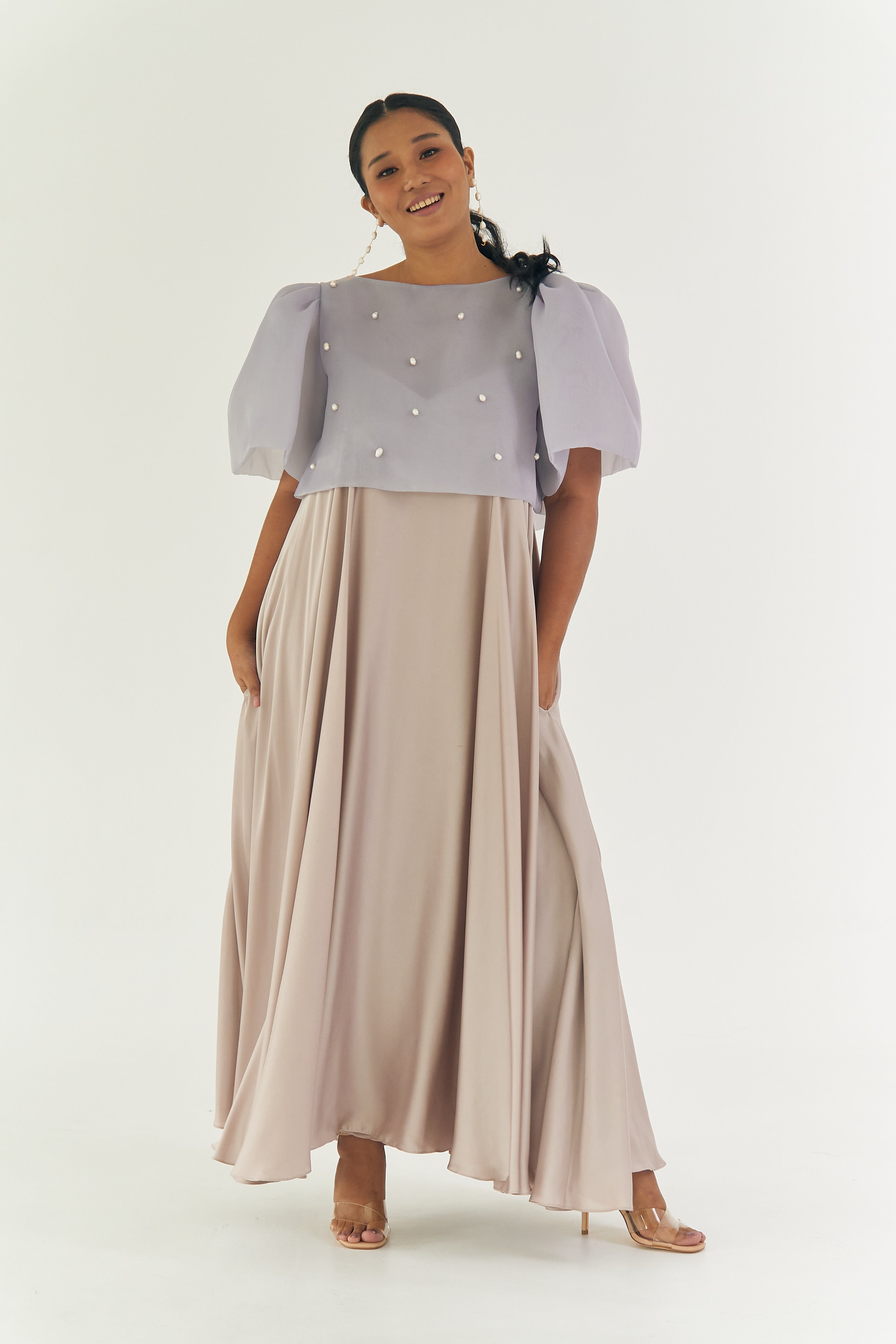 Dusty Blue Camisa with Baroque Pearls