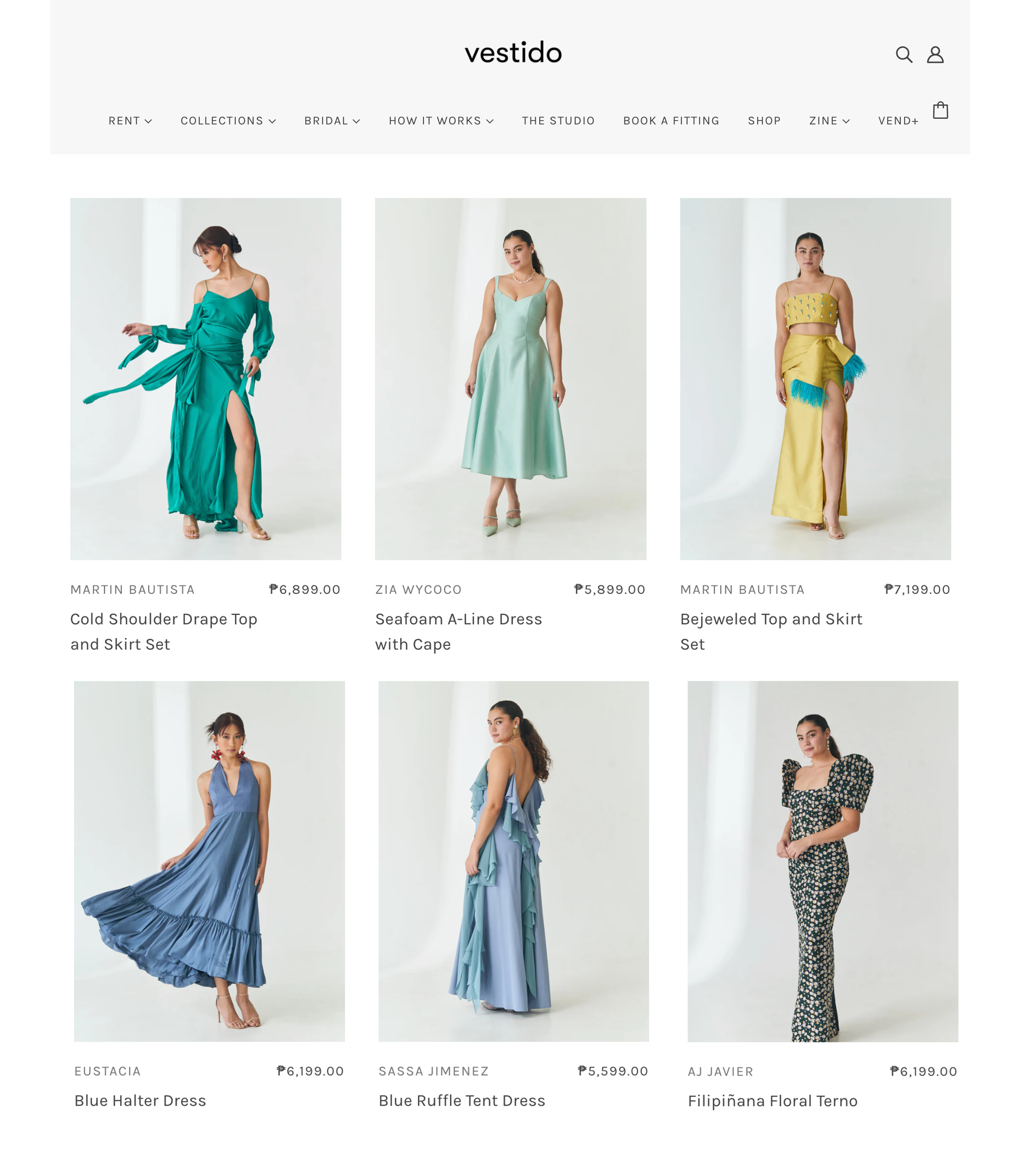 Browse our collection for your rental date. Filter by size, style, color, or designer to find your favorites.
