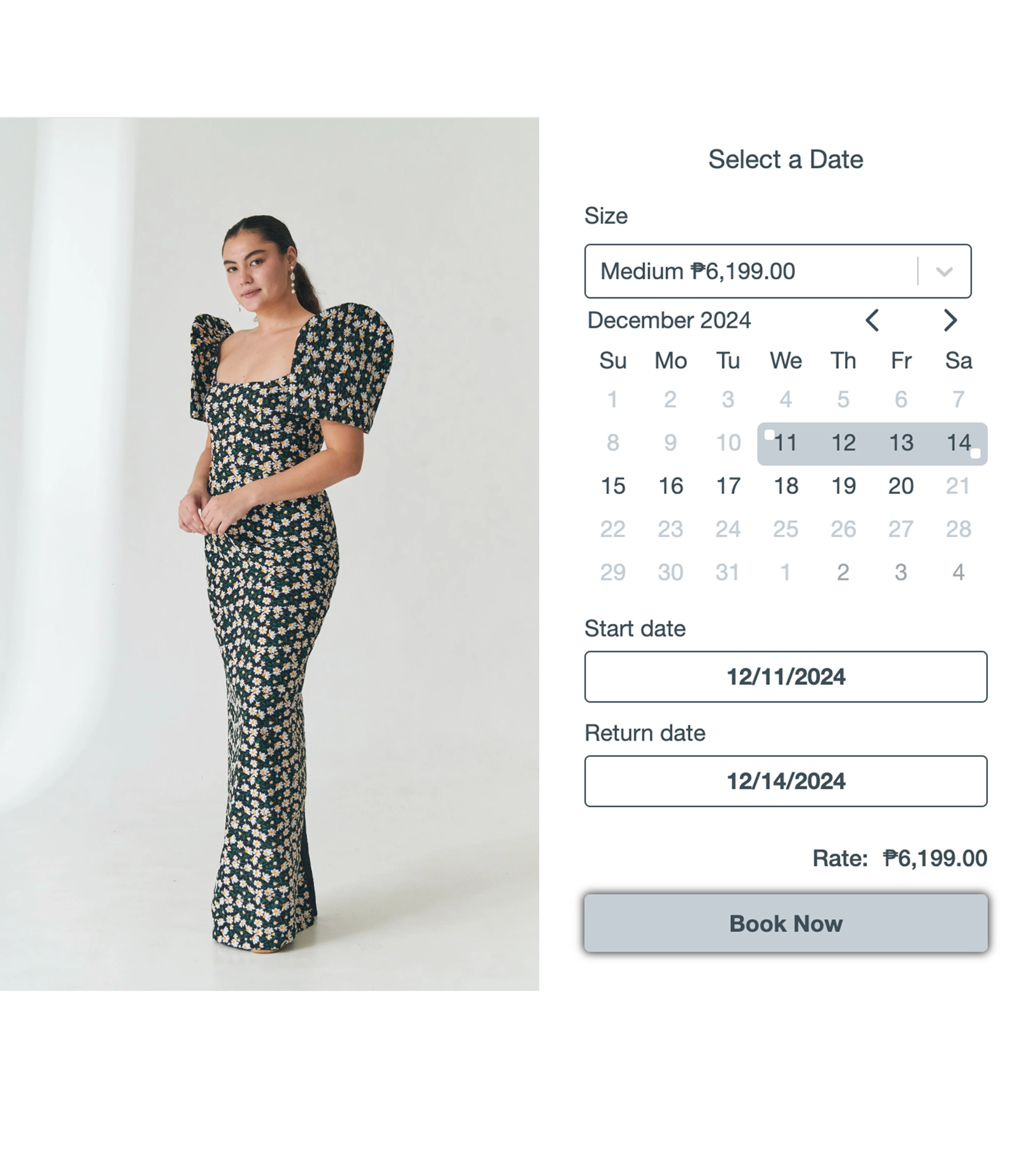 Once you’ve selected your pieces, book a 4-day rental period. If you need the rental for more than the allotted time, send us an email to make the request.